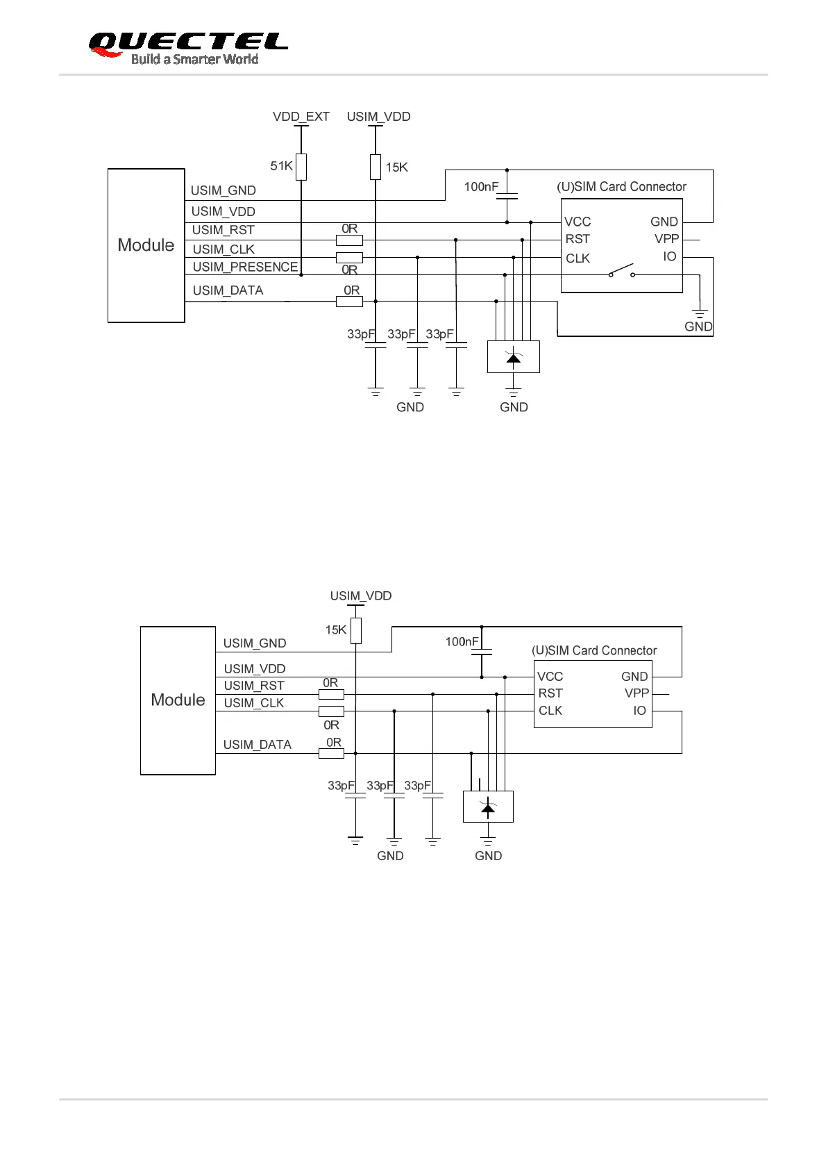 Figure 18: Reference Circuit of (U)SIM Interface with a 6-pin (U)SIM Card Connector