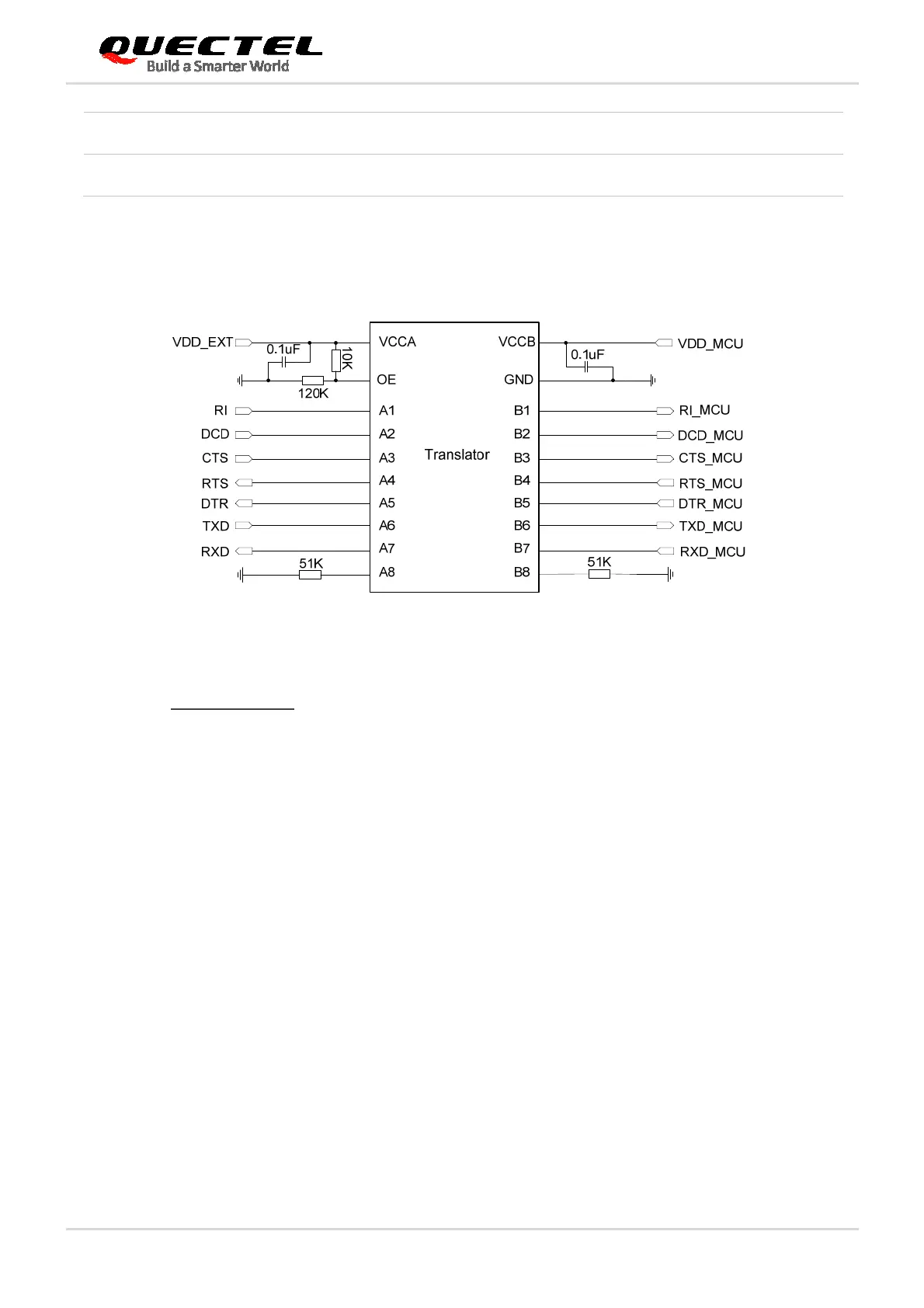 The module provides 1.8V UART interfaces. A level translator should be used if customers’ application is