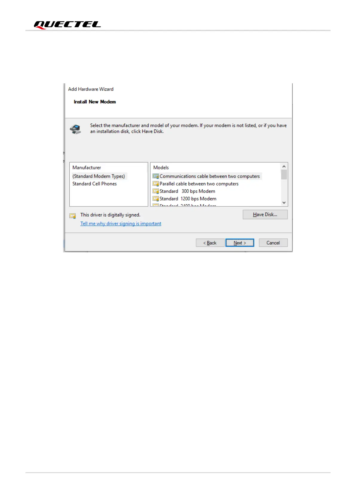 Modem” and then the port (such as “COM10”) to be installed; click “Next” button until the