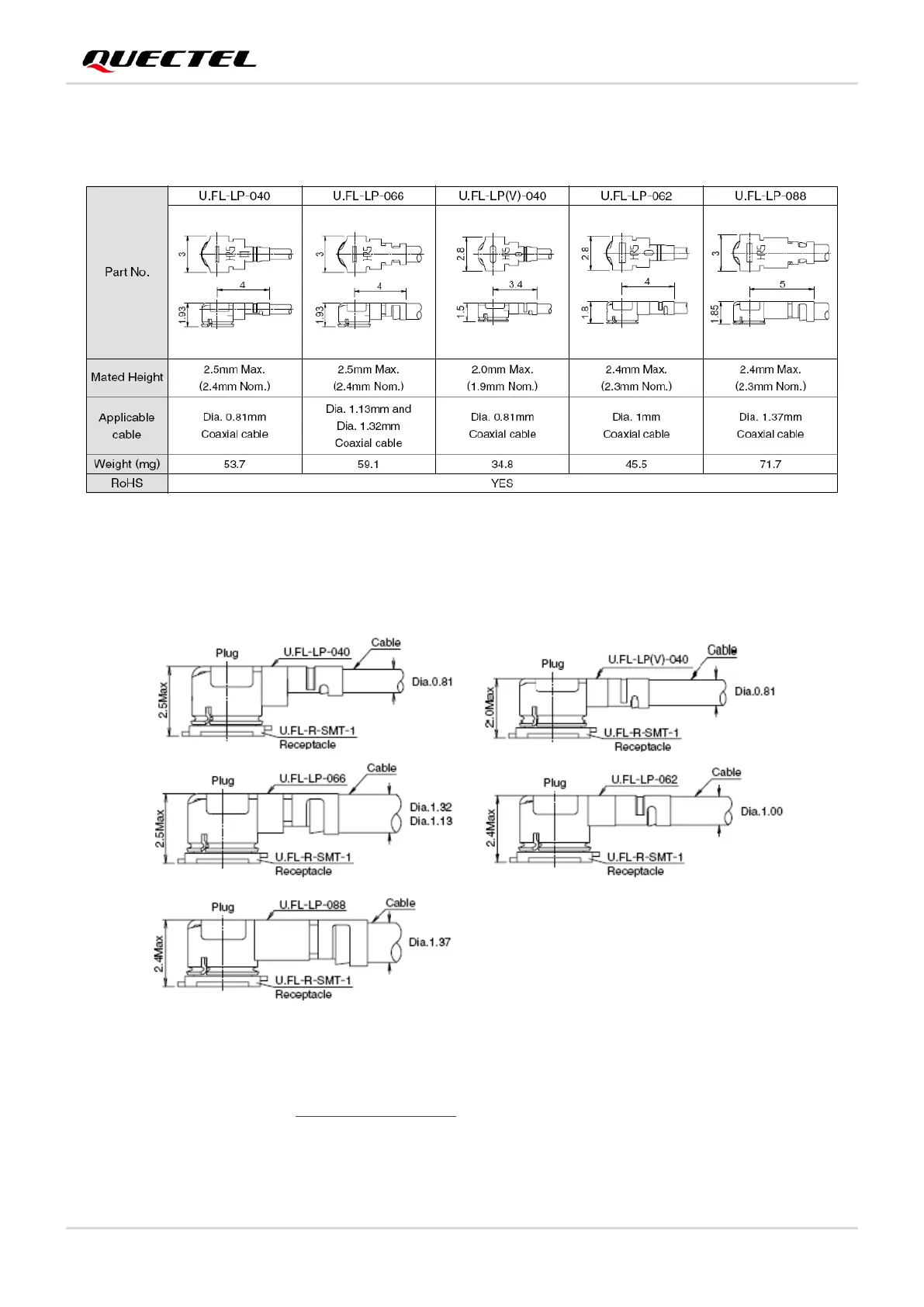 U.FL-LP series mated plugs listed in the following figure can be used to match the U.FL-R-SMT