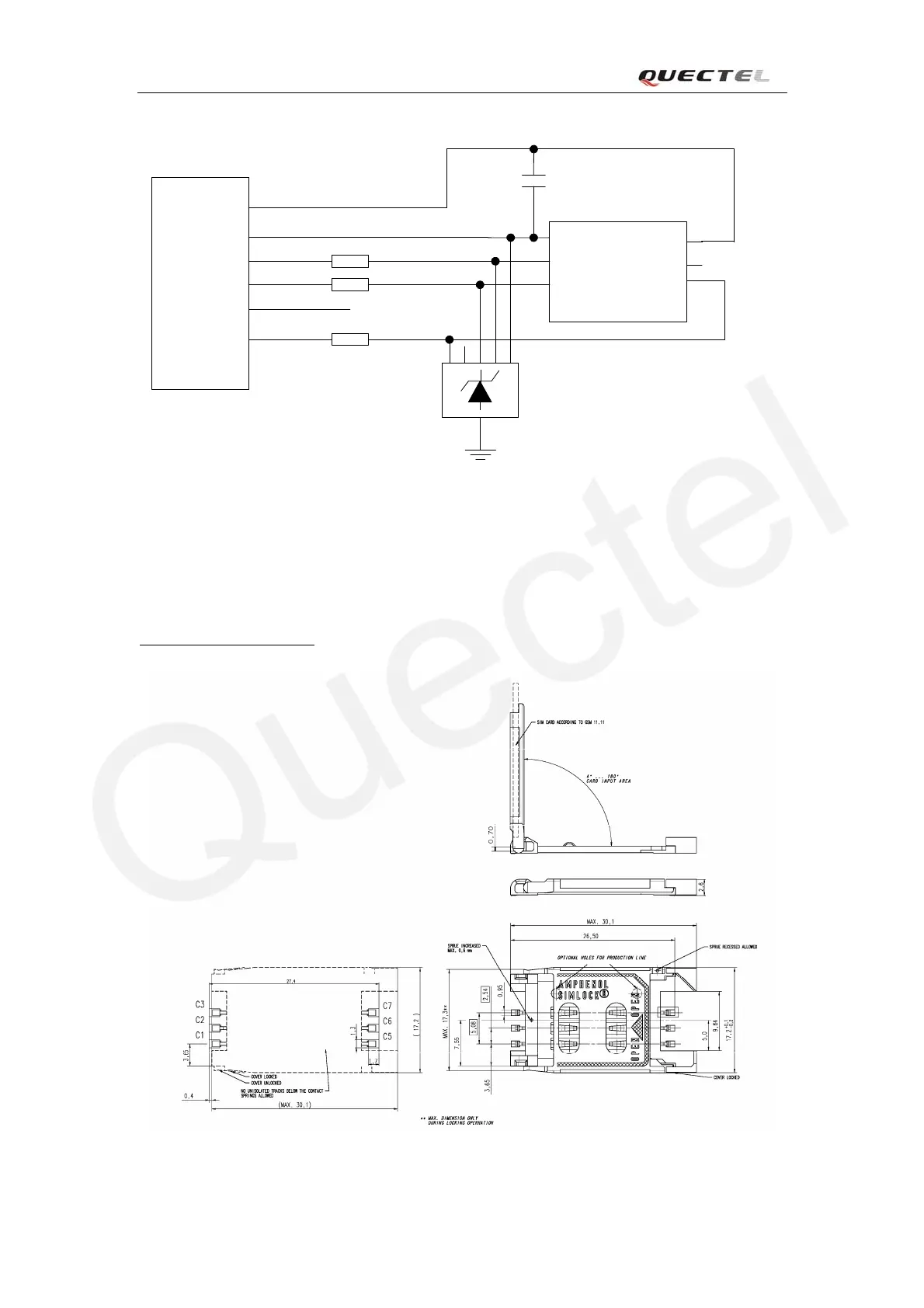 Figure 34: Reference circuit of using 6-pin SIM card socket