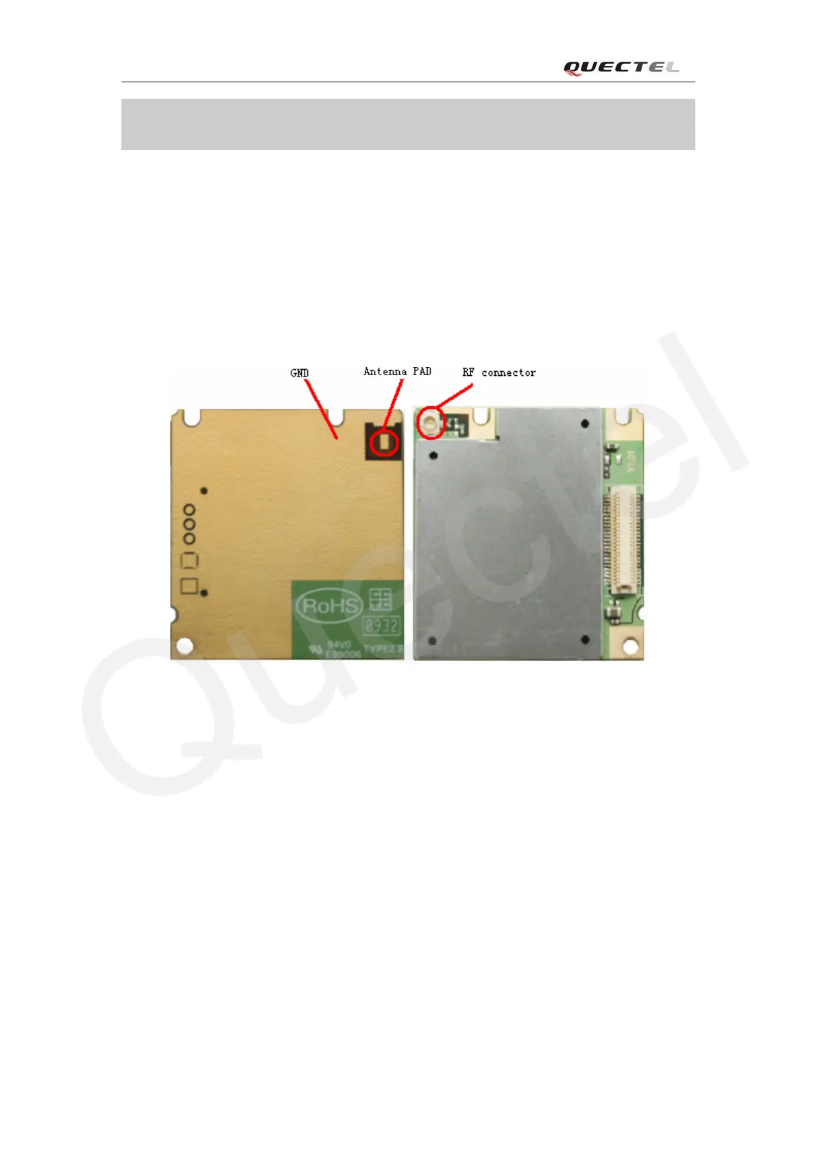 The antenna PAD and RF connector are shown in Figure 42: