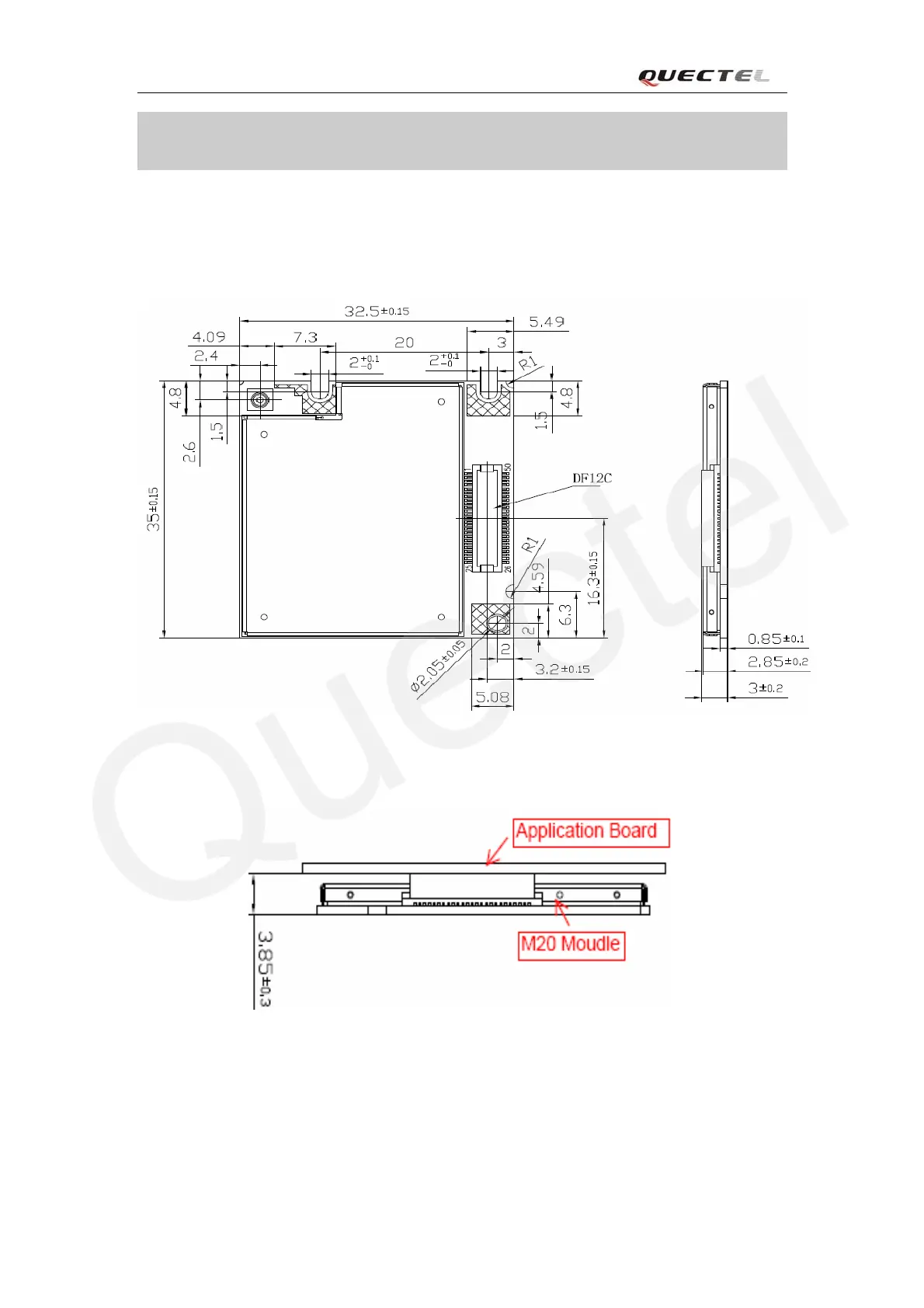 Figure 44: M20 module matchs with the application boardUnit: mm