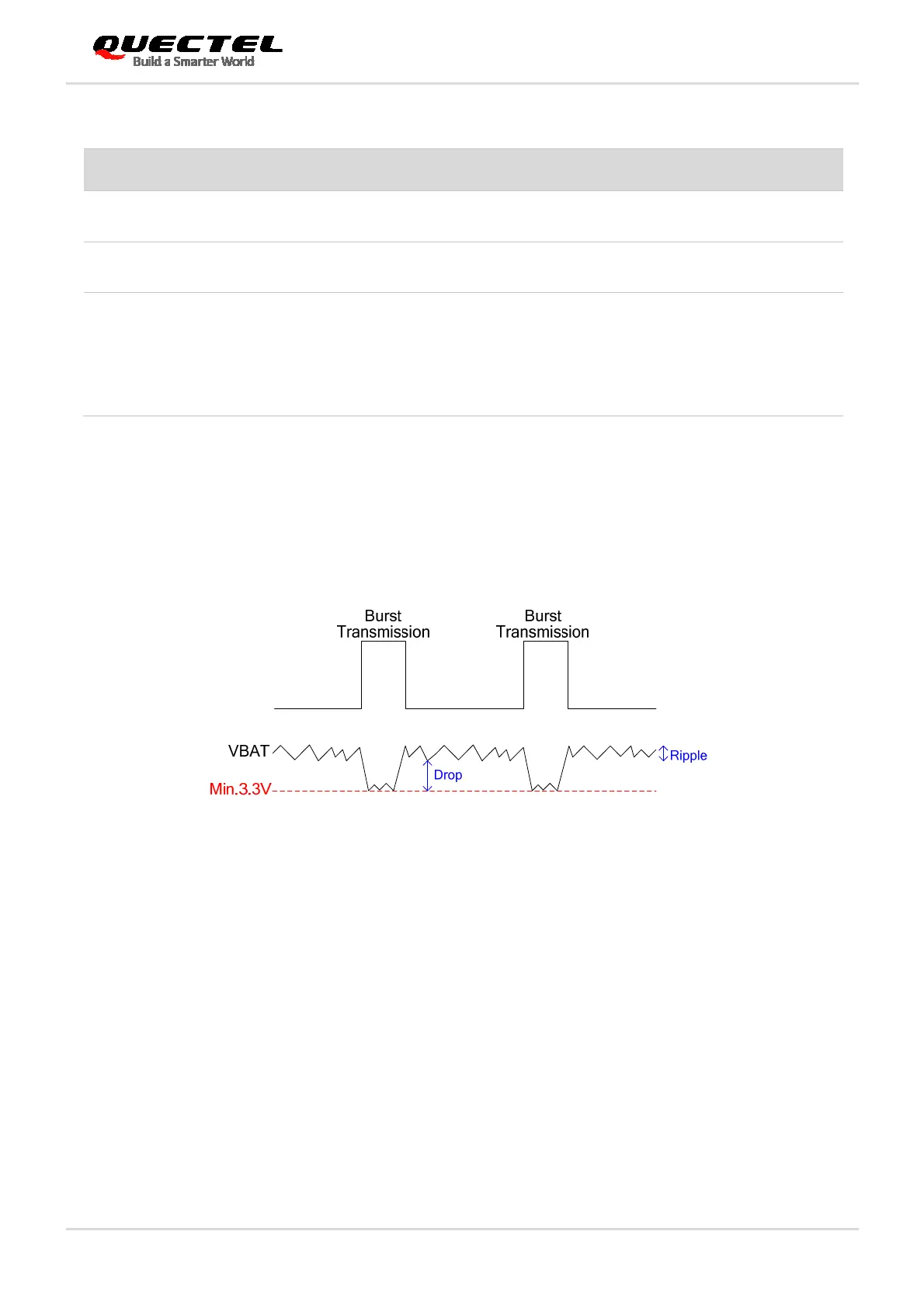 never drop below 3.3 V. The following figure shows the voltage drop during burst transmission in 2G
