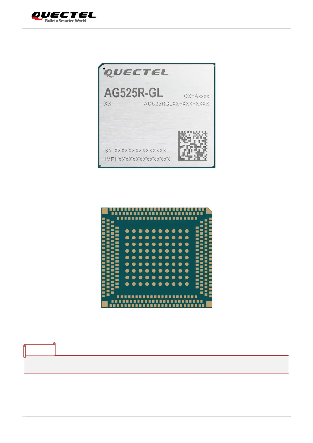 These are renderings of the module. For authentic appearance, see the module received from Quectel.