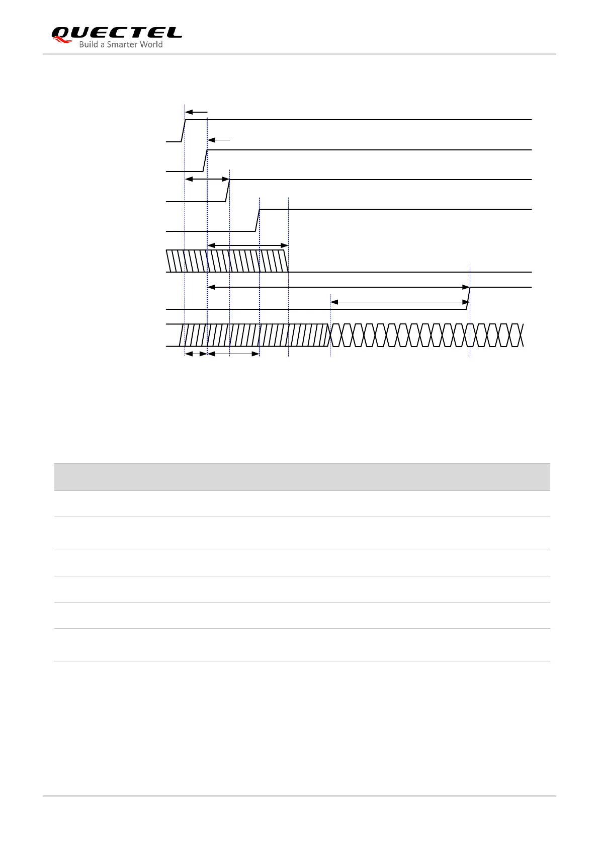 The following figure and table are PCIe turn-on timing and variables of the module.