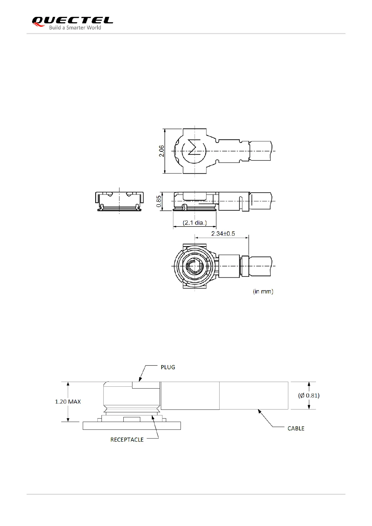 that will meet a maximum height of 1.2 mm using a Ø 0.81 mm coaxial cable or a maximum height of 1.45