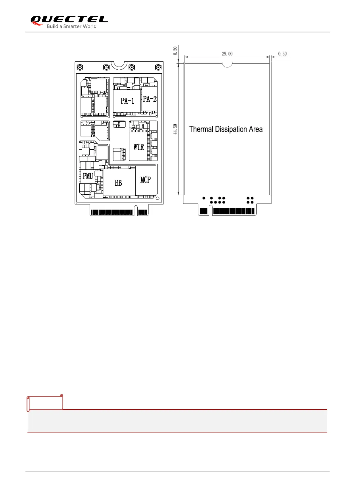Figure 36: Thermal Dissipation Area Inside and on Bottom Side of the Module (Unit: mm)