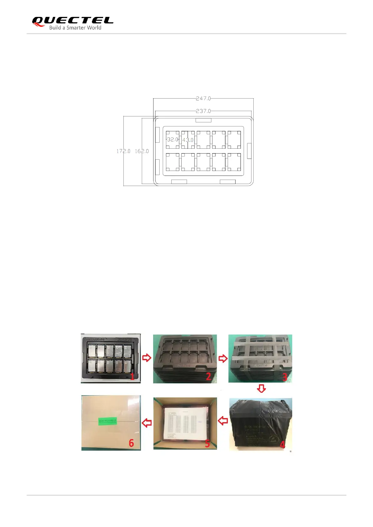 Each tray contains 10 modules. The smallest package contains 100 modules. Tray packaging procedures