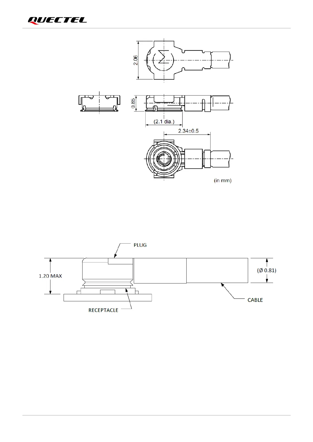the mating plug using a Ø 0.81 mm coaxial cable.