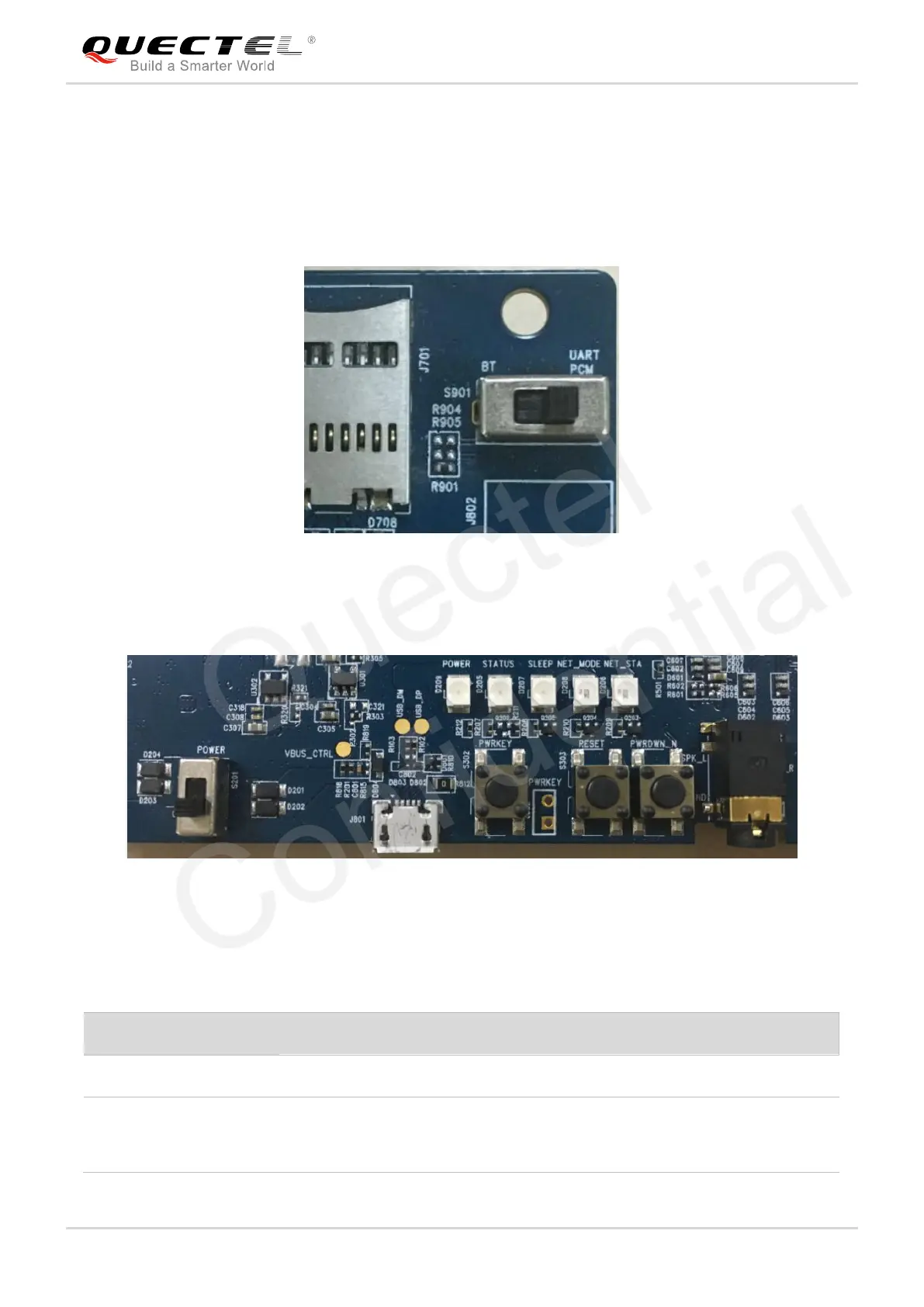 The UMTS<E EVB includes two switches (S201 and S901) and three buttons (S301, S302 and S303),