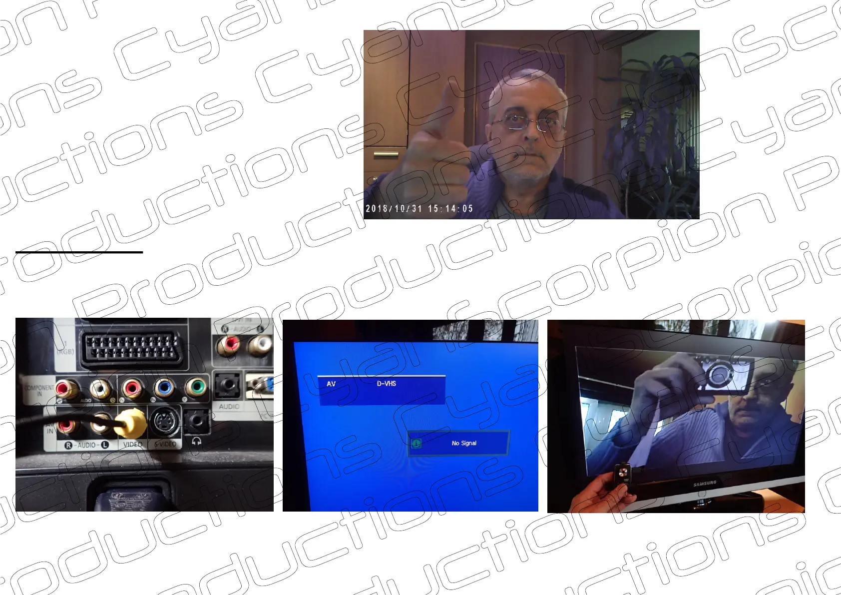 using the provided cable. On the TV, select AV as your input .Now turn on your camera and an image in 720p is displayed .