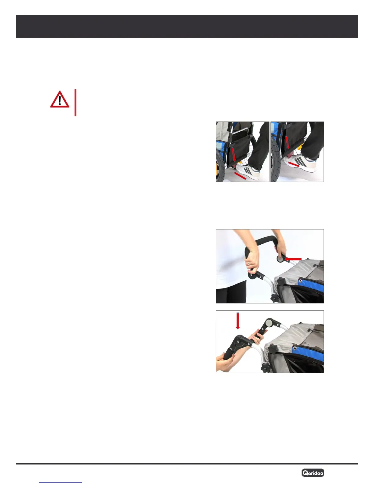by the word “PUSH”. You can set and engage the push handle at several levels in the 74 – 107 cm
