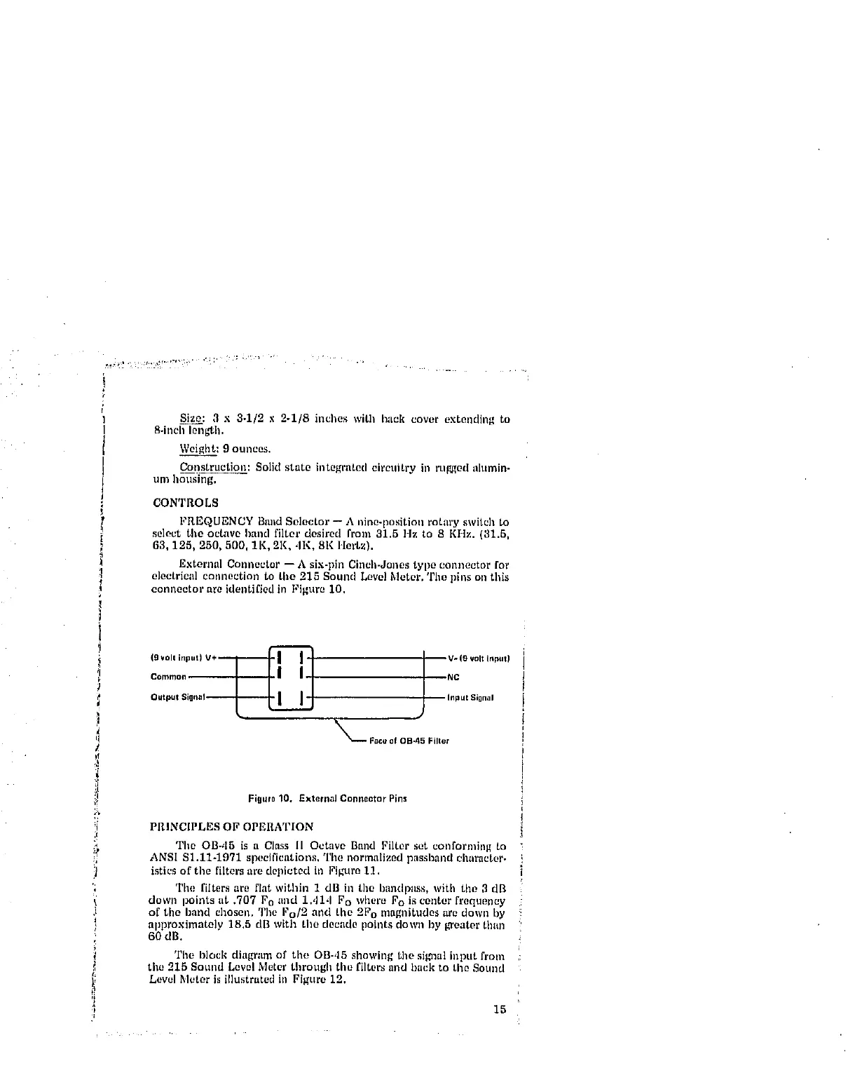 electrical connection to the 215 Sound Level Meter. The pins on this