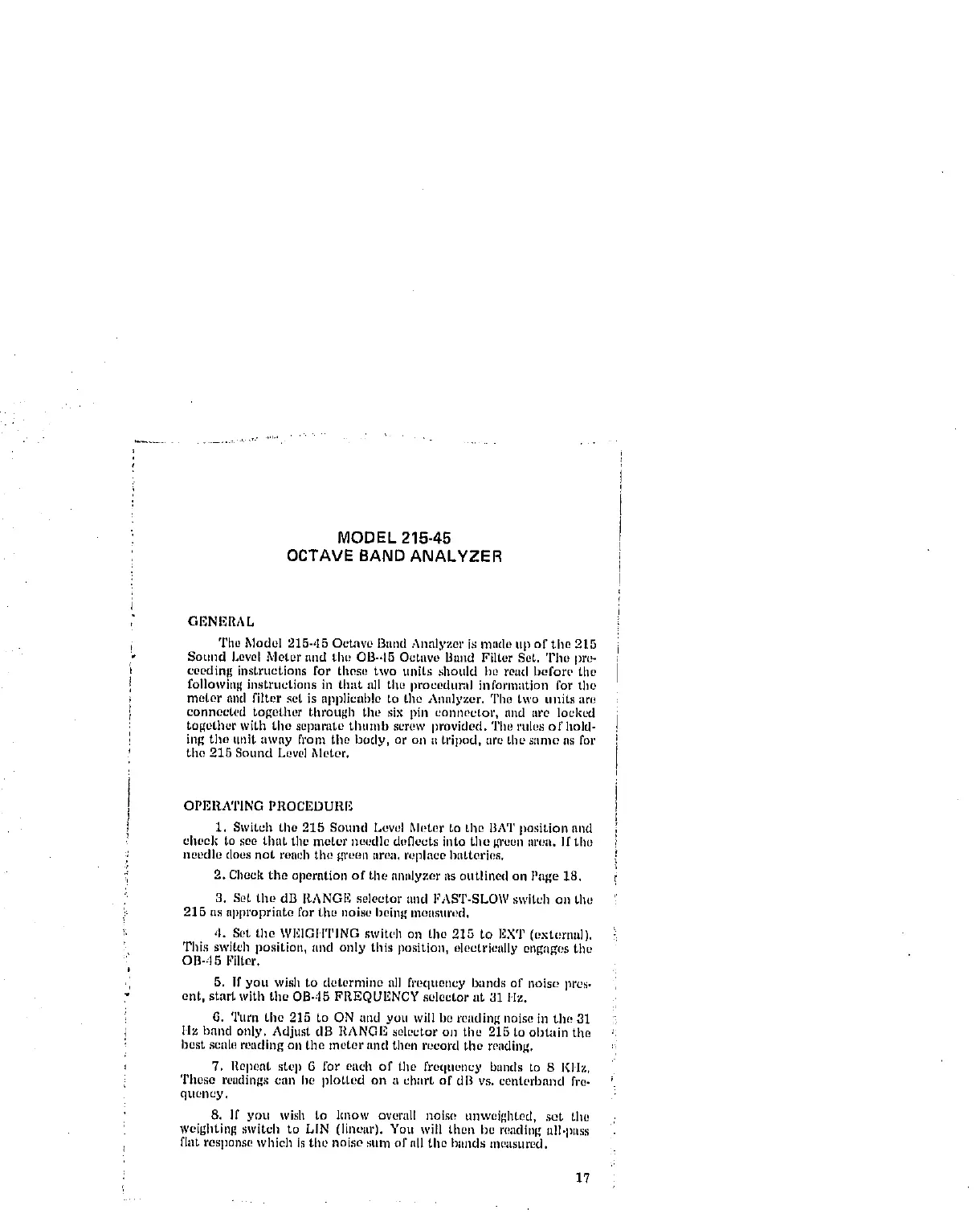 Sottnd I.ovel Meter and tim OB-,I5 Octave Band Filter Set. The pre-