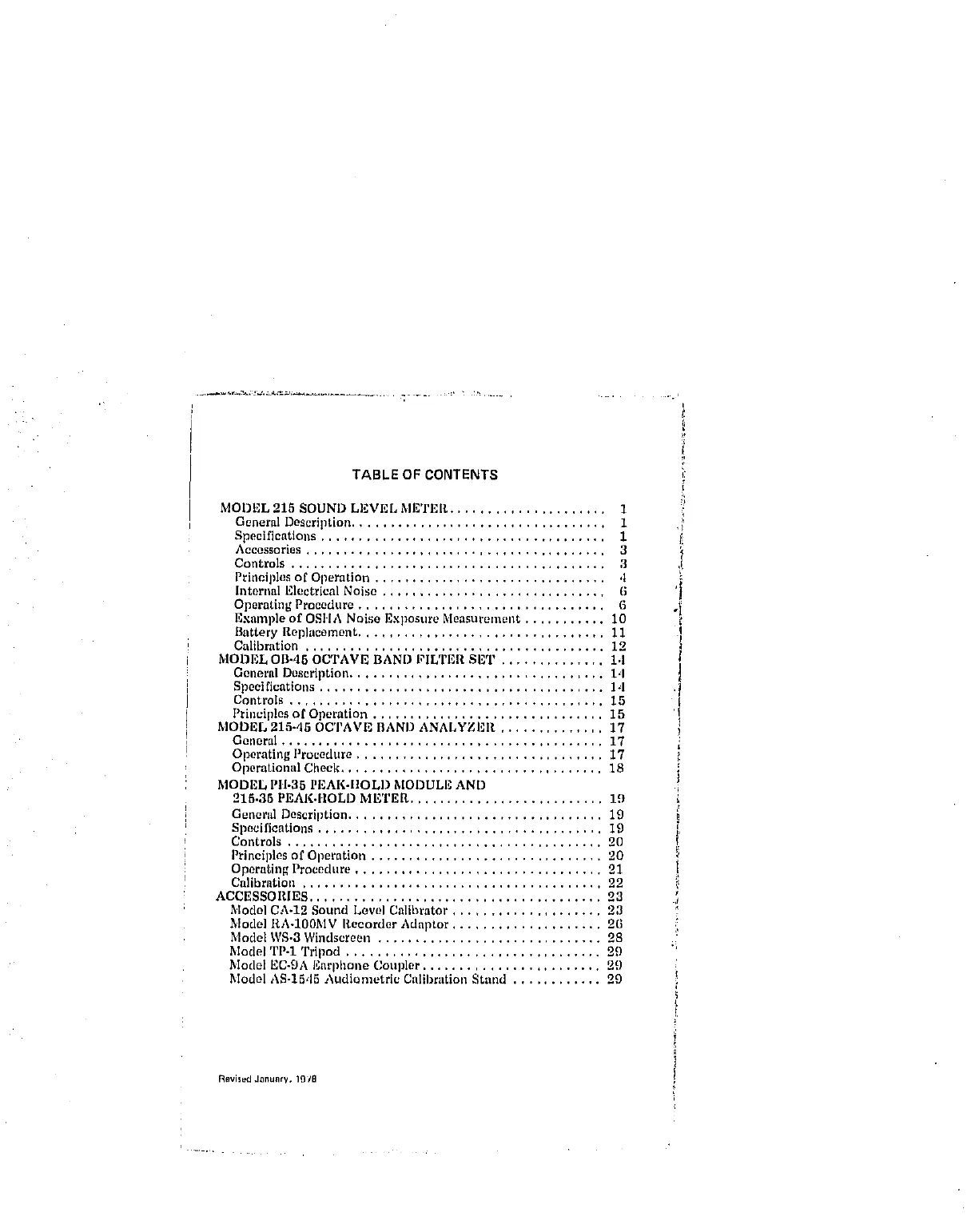 Model CA-12 Sound Level Calibrator .................... 23