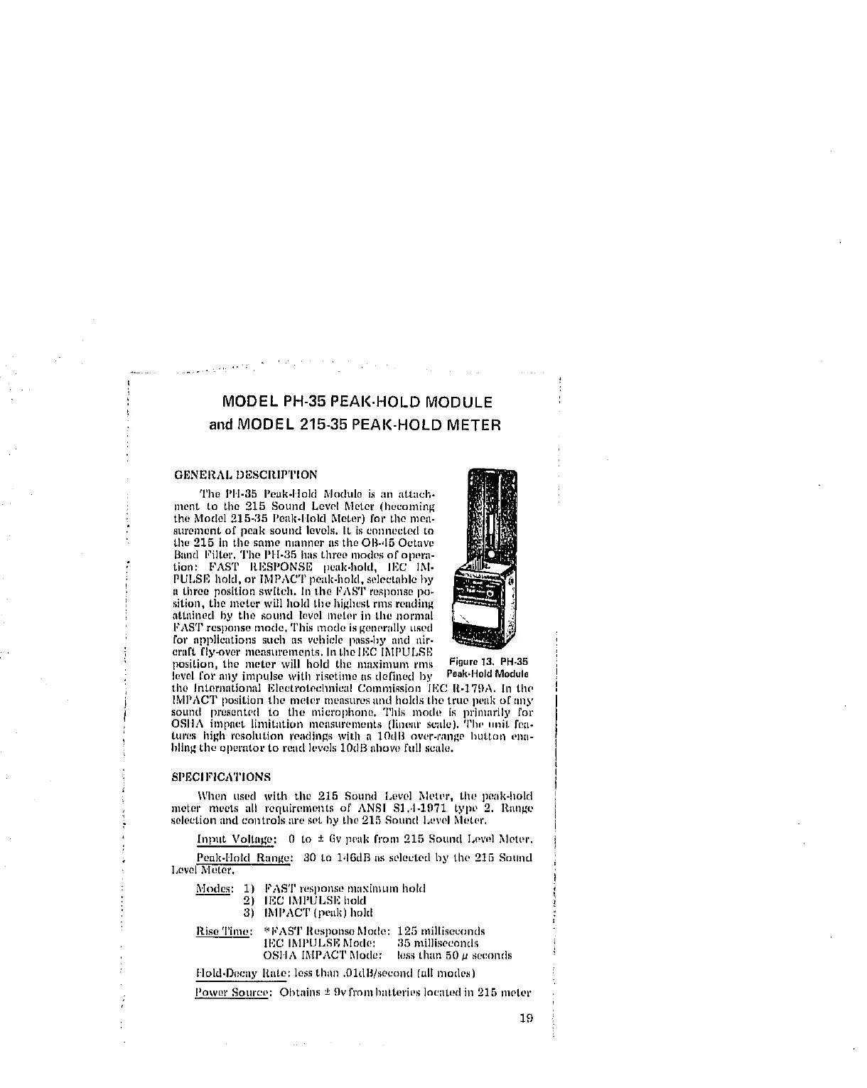 and MODEL 215-35 PEAK-HOLD METER