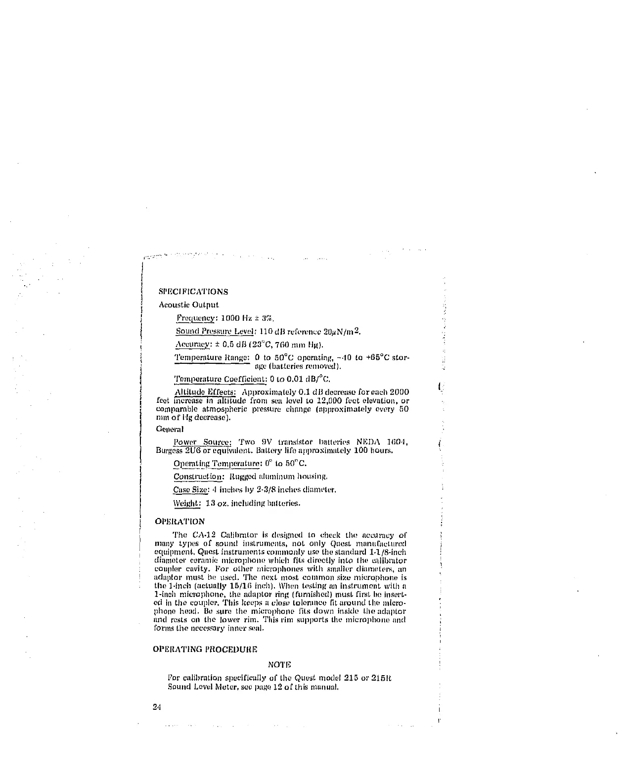 l"or calibration specifically of tile Quest model 215 or 215R