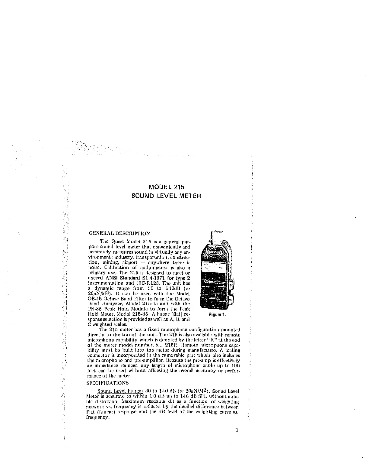 .'. Meter is accurate to within 1,0 dB up to 1,16 dl_ SPL without nota-