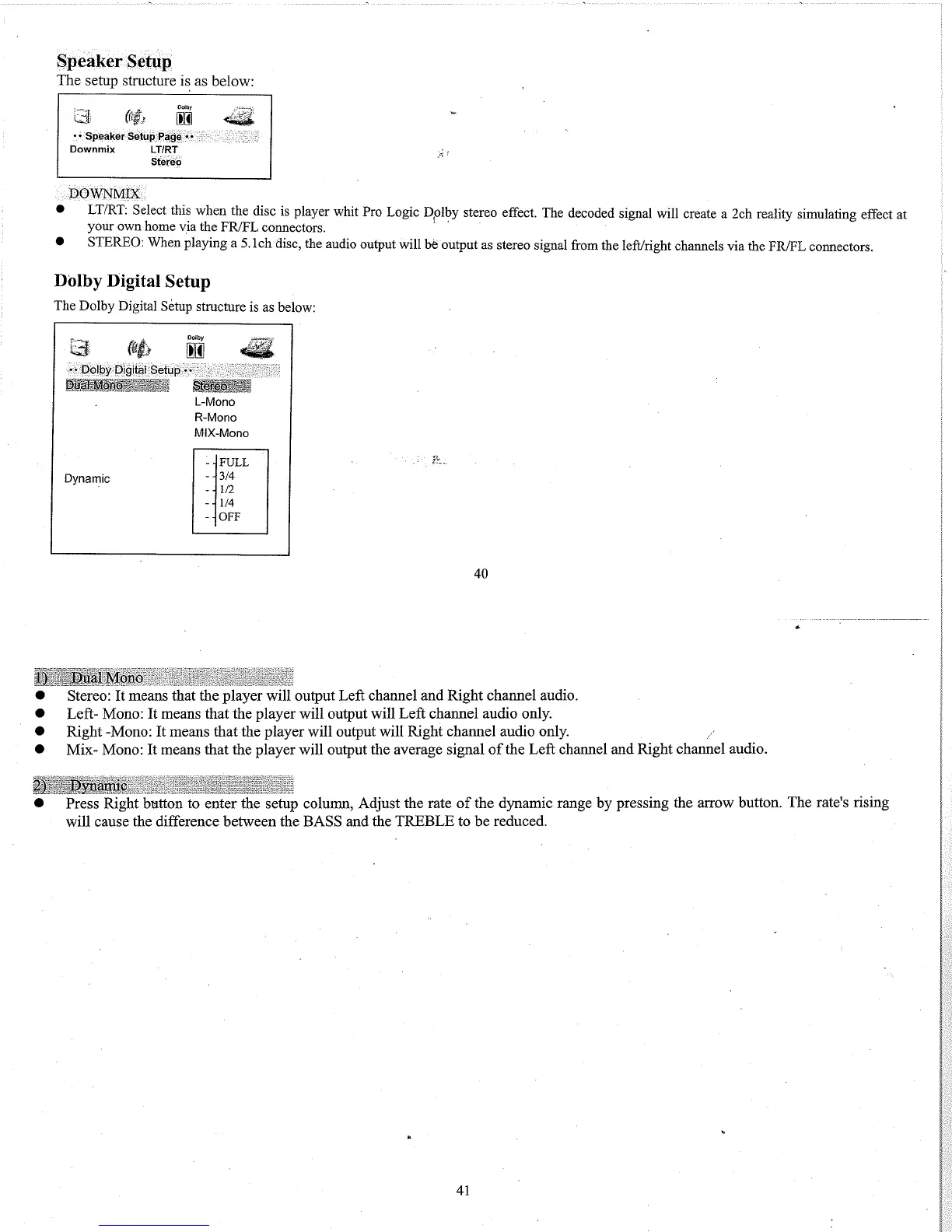 Quest Engineering QX-3202DVD - Speaker Setup; Dolby Digital Setup; Dual Mono; Dynamic