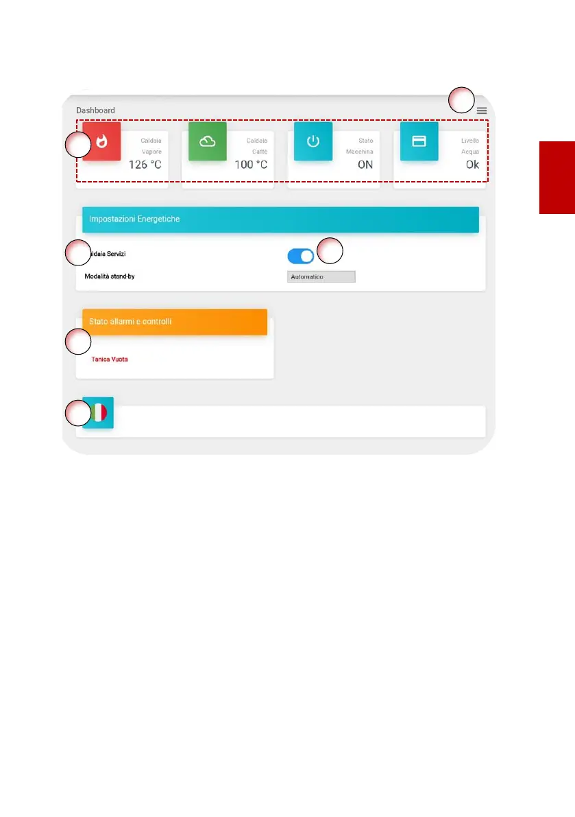 Temperatur Kaffeekessel und Dampf, Maschinenstatus (EIN/AUS) und