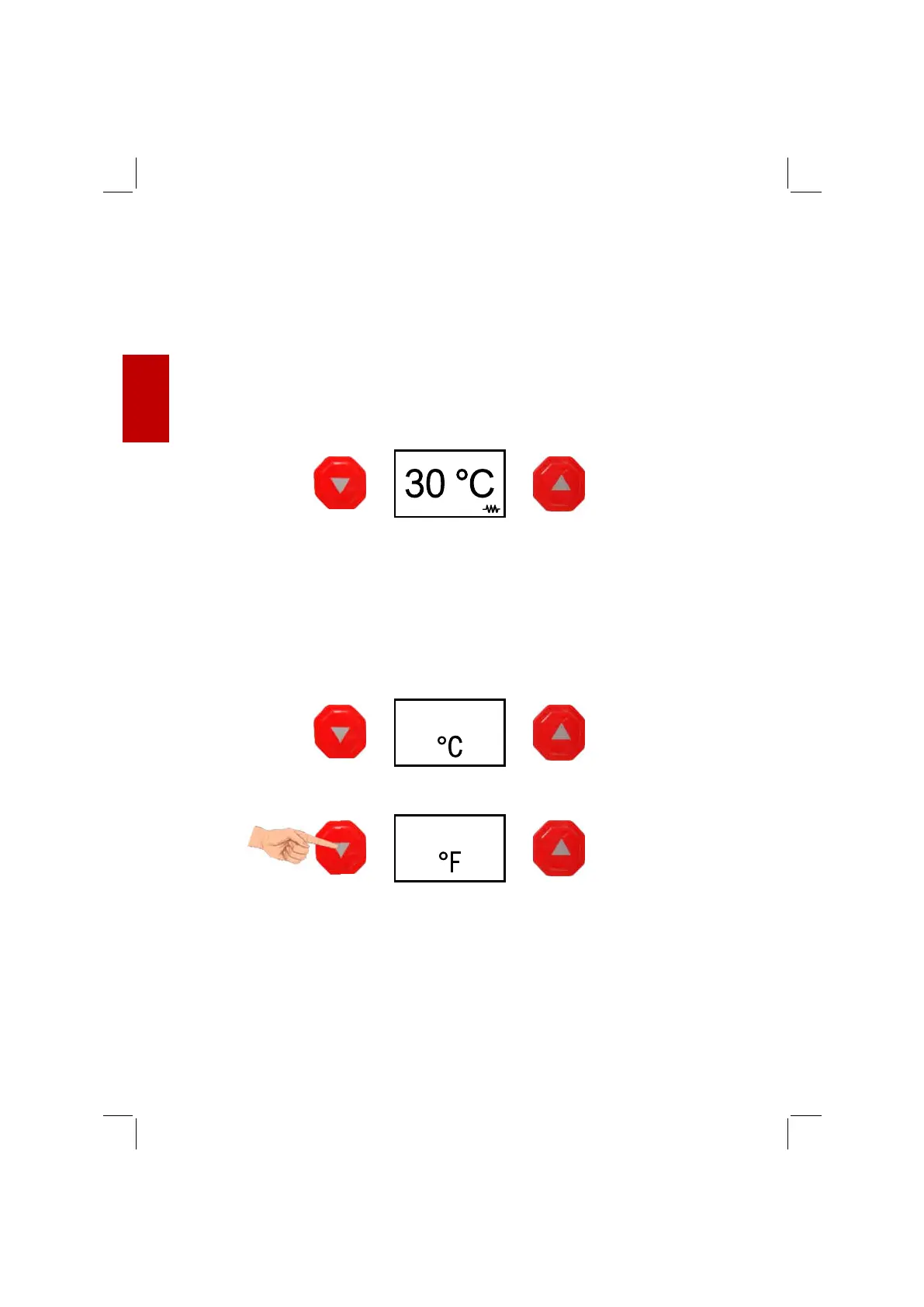Bei Drücken des linken Pfeils können die Fahrenheit-Grade eingestellt werden.