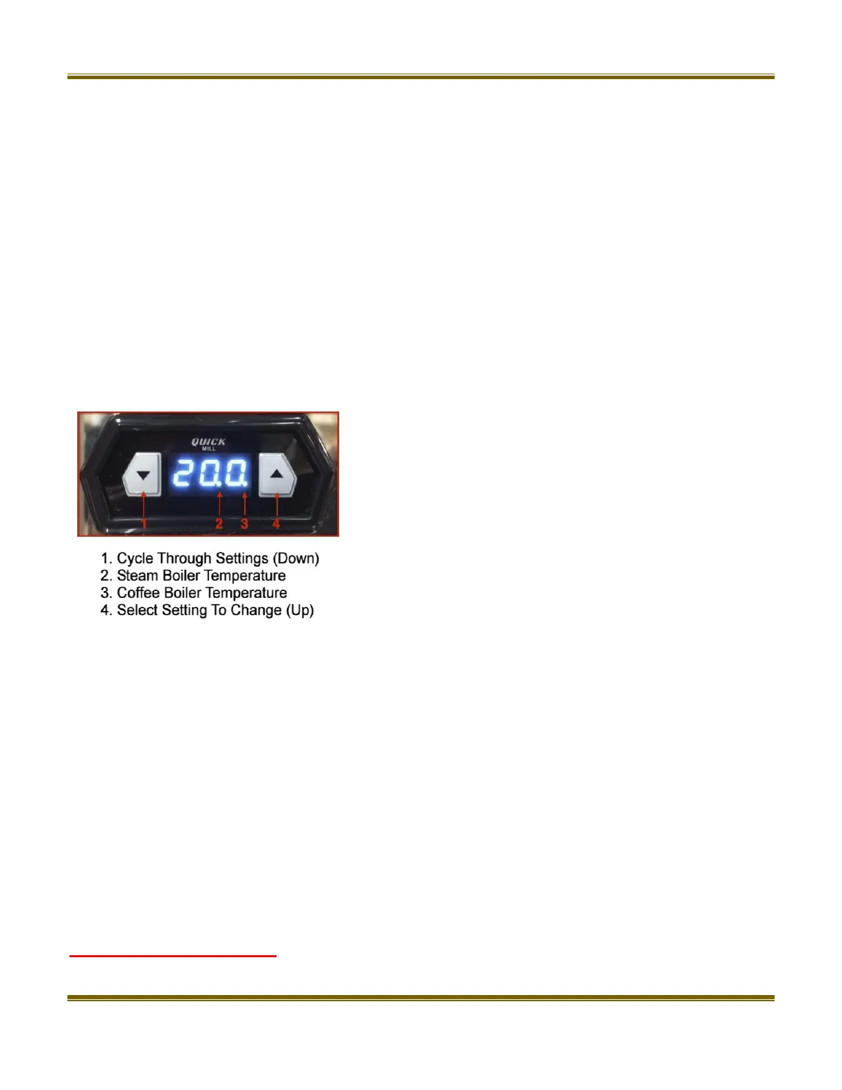 then release the keys. T1 is the coffee boiler temperature. Press the up arrow key to see the