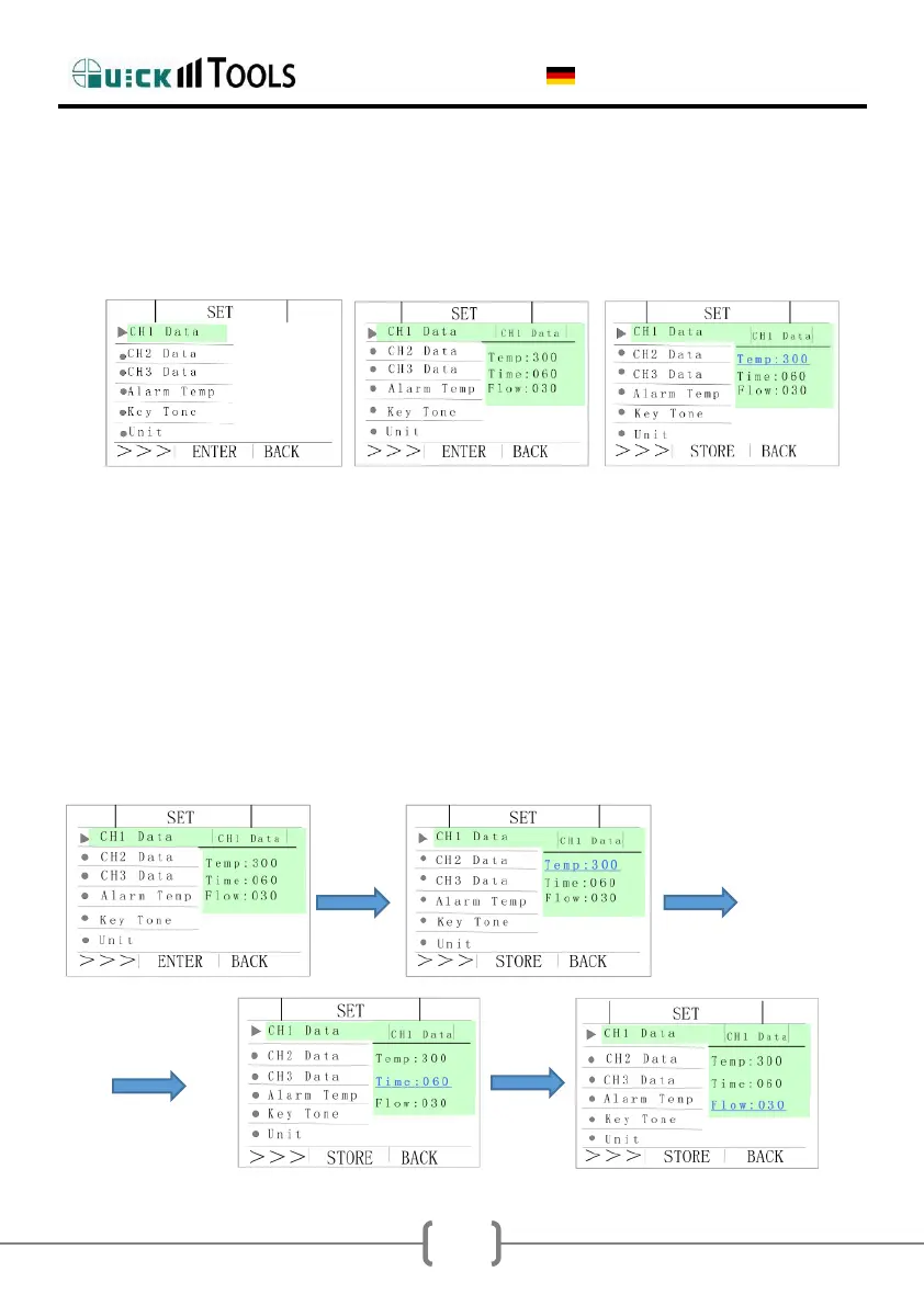 Mit STORE speichern Sie den Wert ab. Mit der Taste BACK verlassen