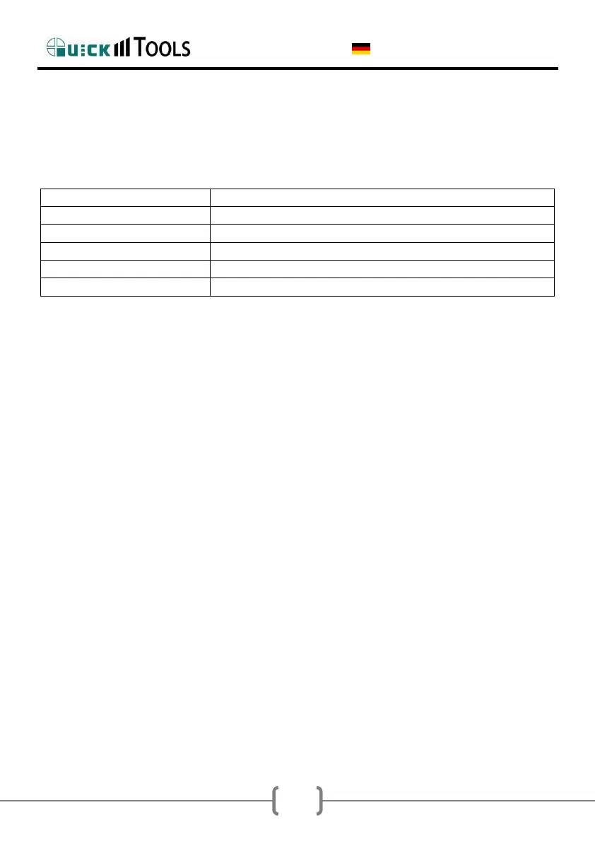 Quick Tools QUTR1300A - Fehlermeldungen; Lieferumfang