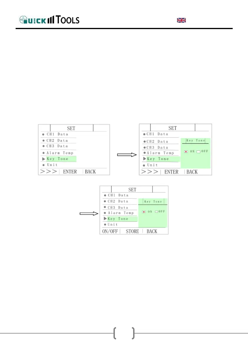 After setting key tone, press “STORE” key affirm, press “Back” key