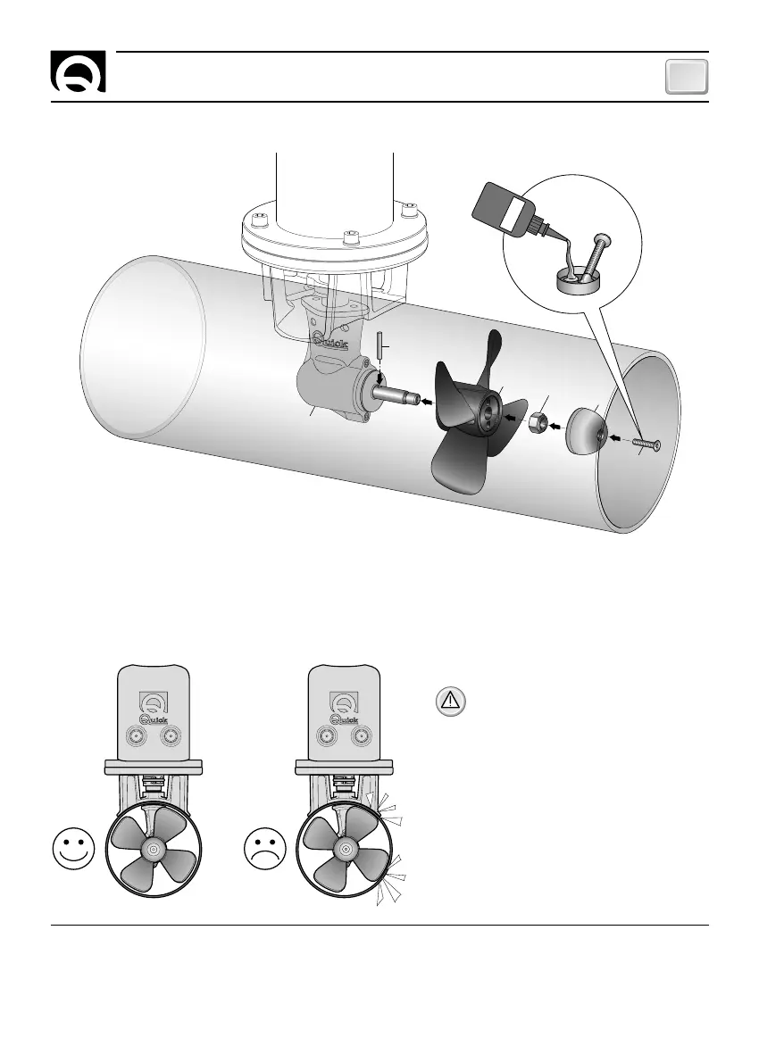 rectly with the drive pin A; fix the propeller with the self-braking nut D. The anode E must be locked with the screw F