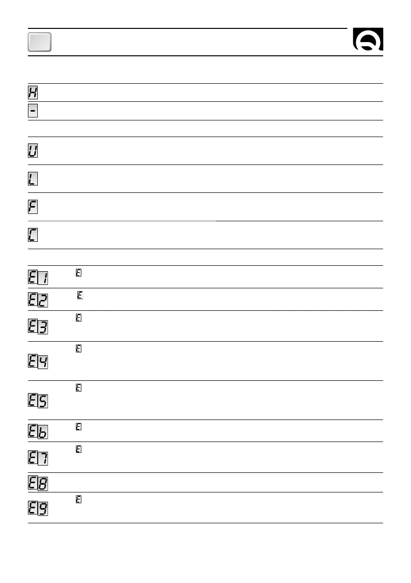 La letra “ ” y el número se alternan en el display con intermitencia. Corto circuito o sobrecarga en salida.