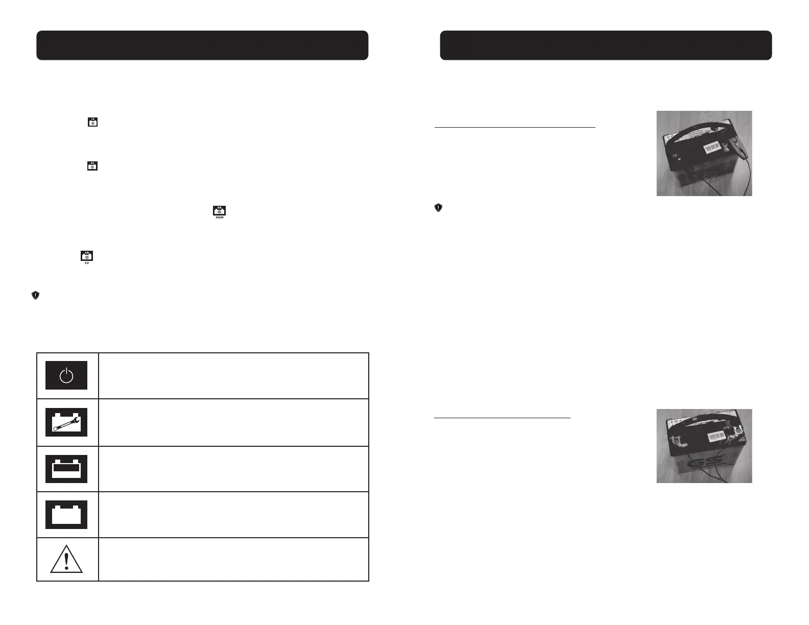 • Connecter d’abord la pince noire (-) à la borne de batterie correspondante, puis con-