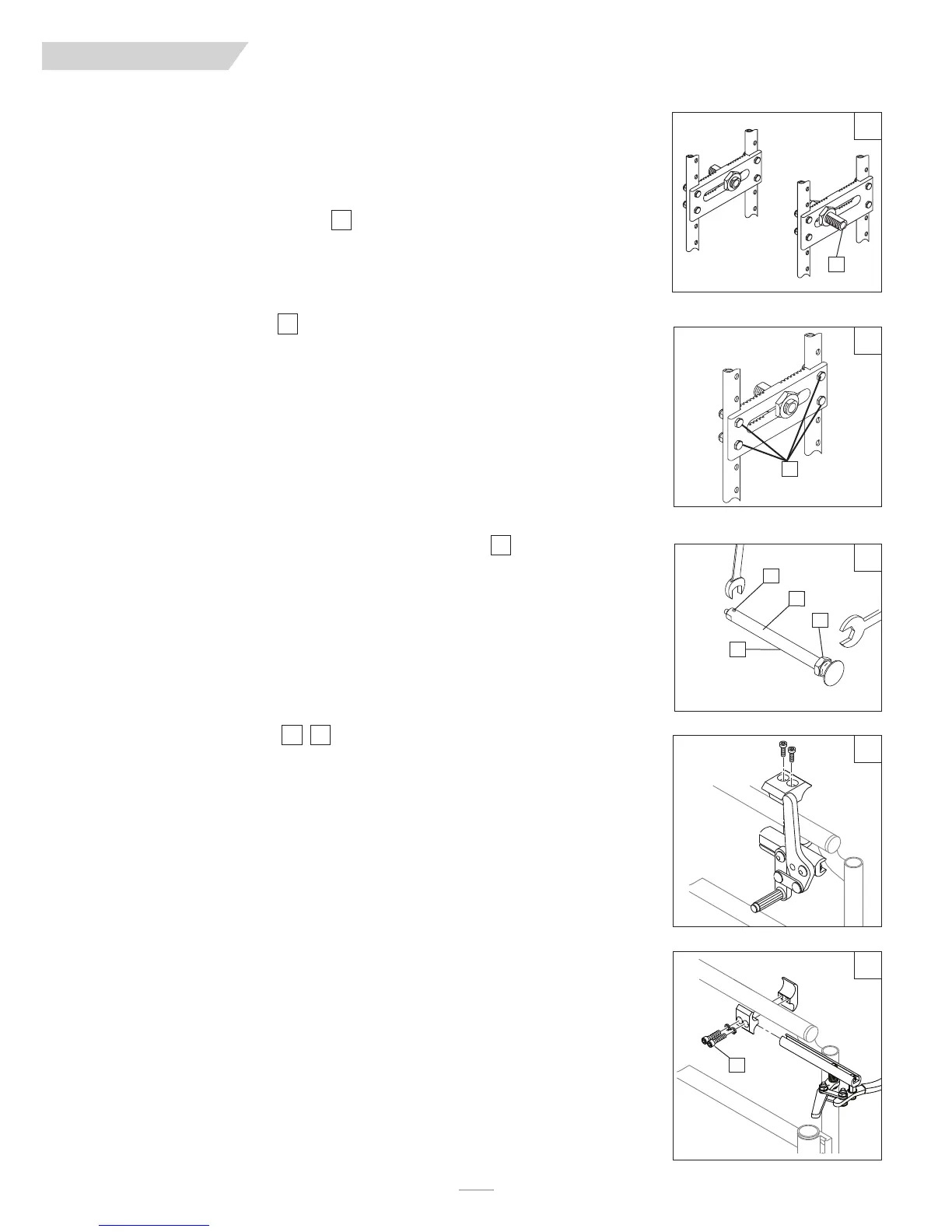 Afloje los tornillos (G) de la parte superior de cada abrazadera con una llave hexagonal de 3/16 pulgadas. Deslice