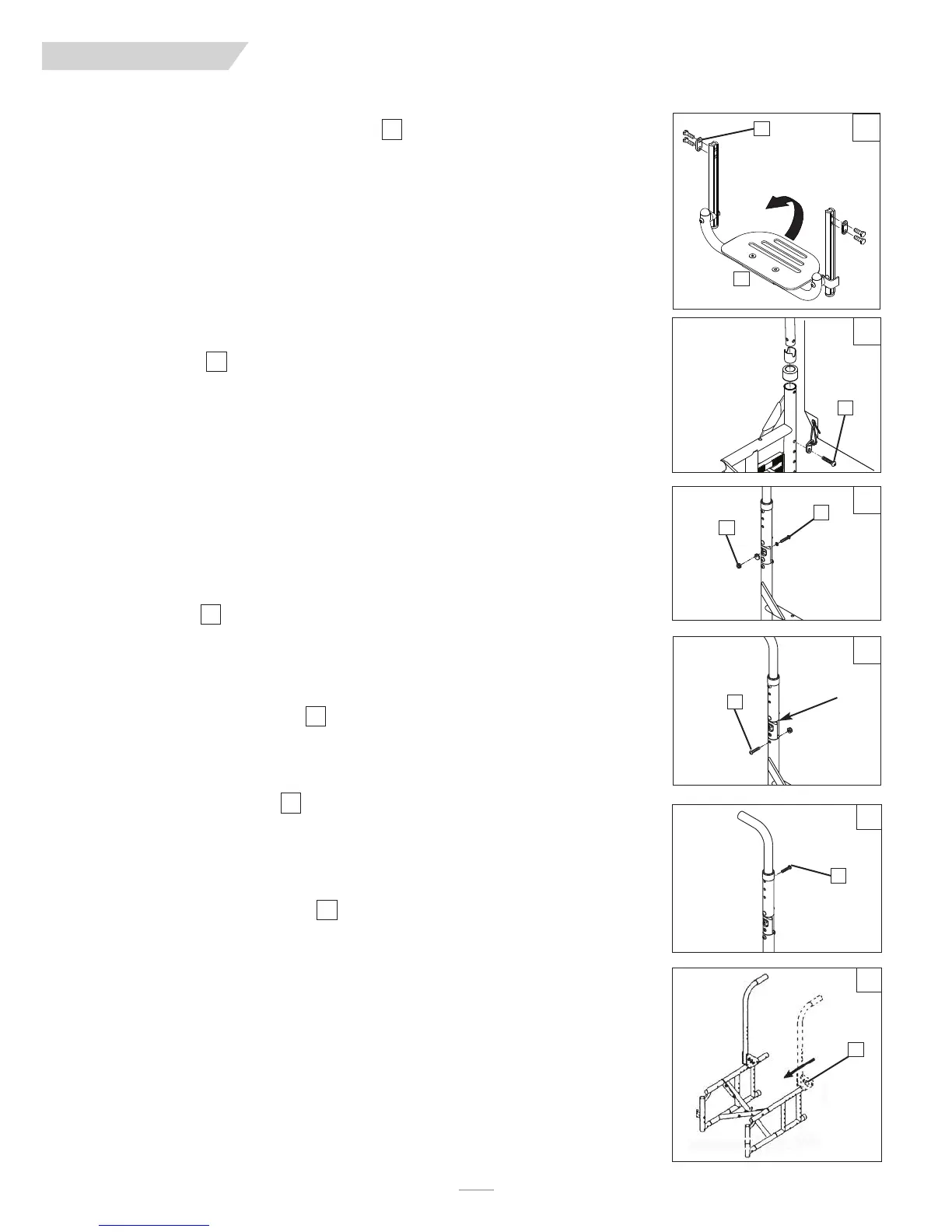 atrás al volver a colocar la bisagra del respaldo (F) en los orificios previamente perforados en el bastidor.
