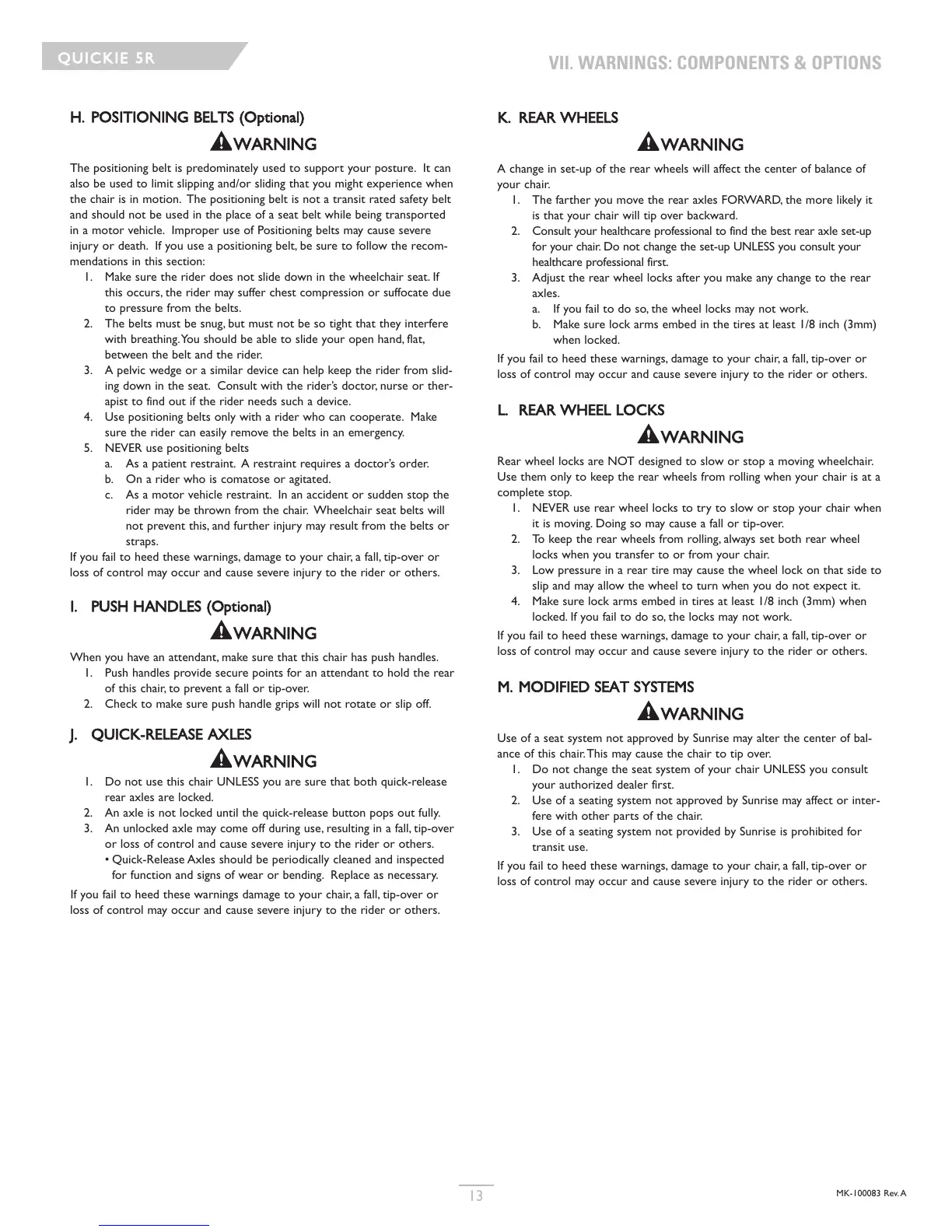 2. Use of a seating system not approved by Sunrise may affect or inter-