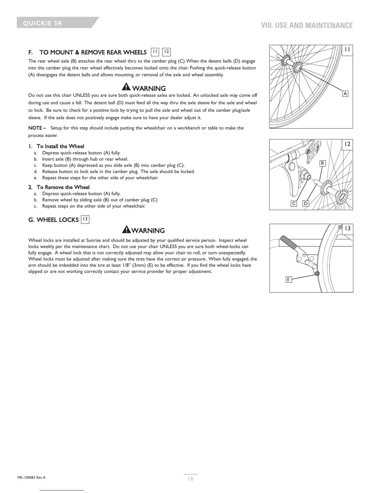 Do not use this chair UNLESS you are sure both quick-release axles are locked. An unlocked axle may come off