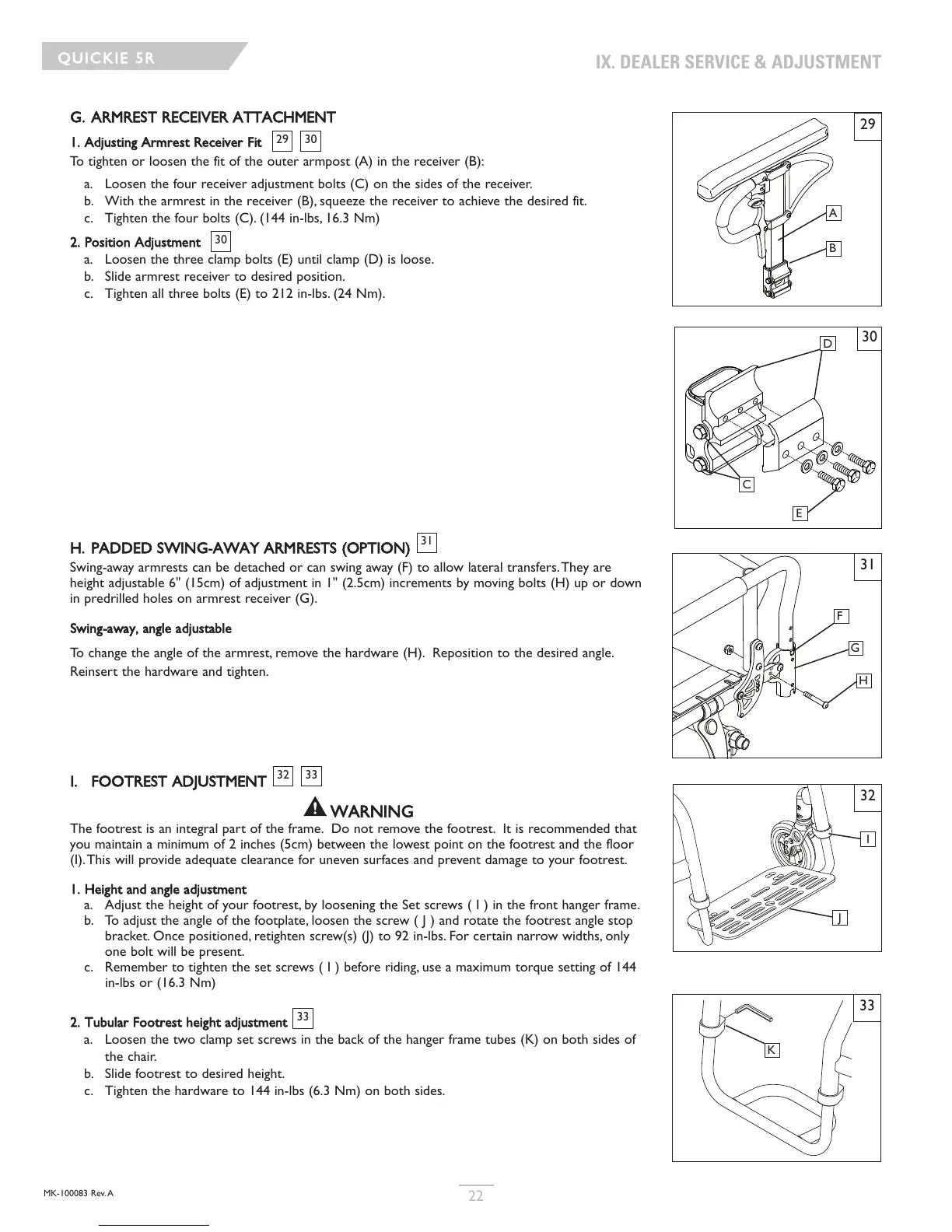 I. FOOTREST ADJUSTMENT