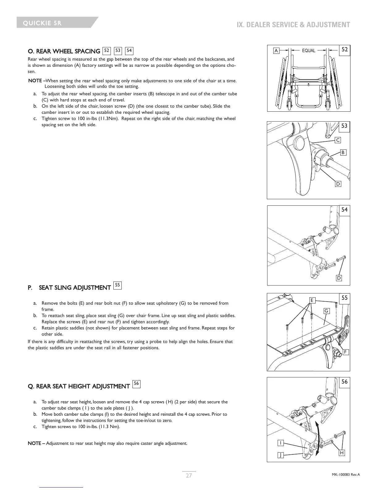 a. To adjust the rear wheel spacing, the camber inserts (B) telescope in and out of the camber tube