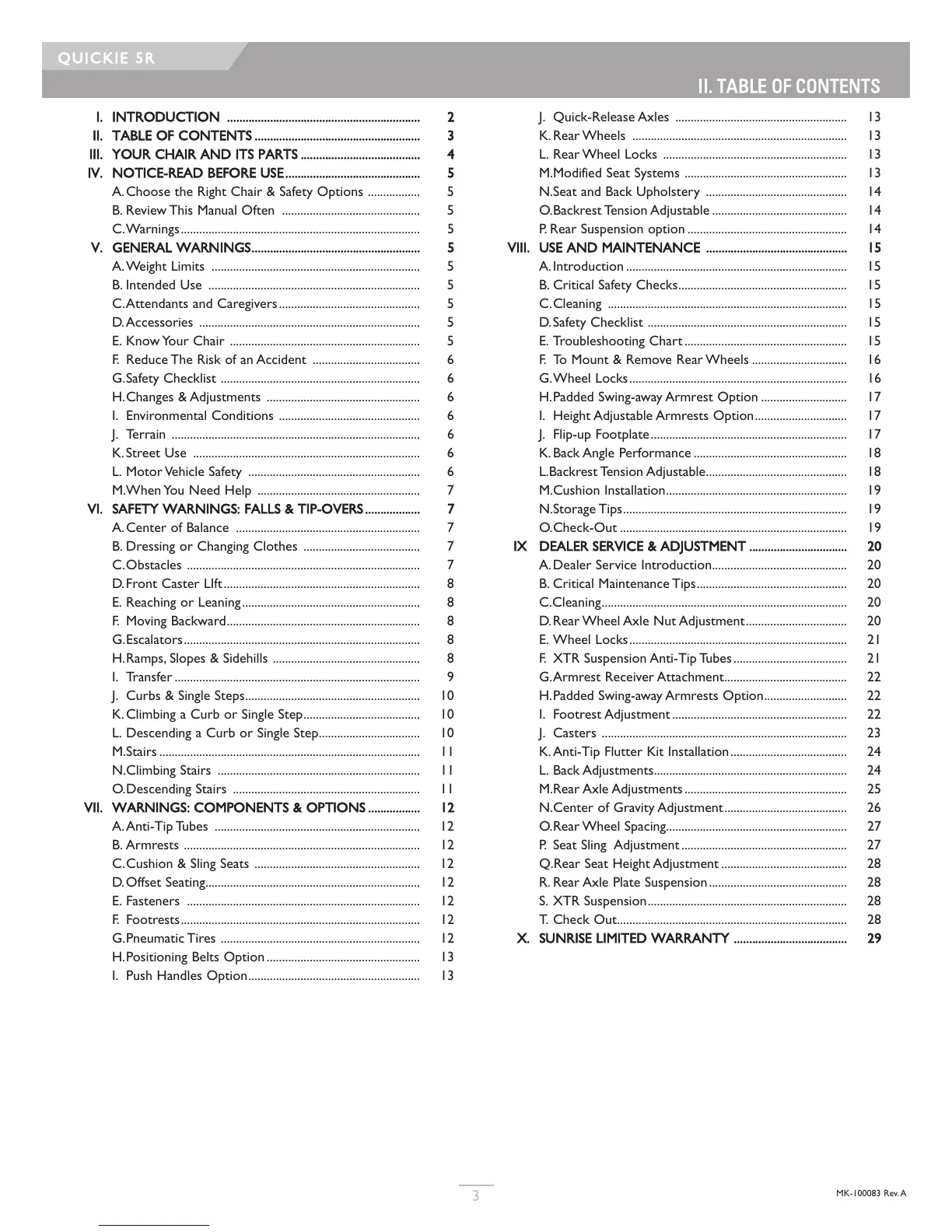 III. YOUR CHAIR AND ITS PARTS ....................................... 4