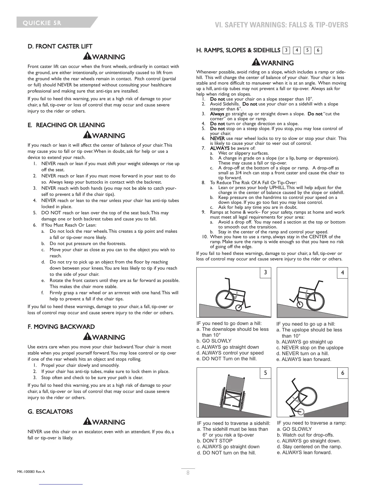 4. NEVER reach or lean to the rear unless your chair has anti-tip tubes