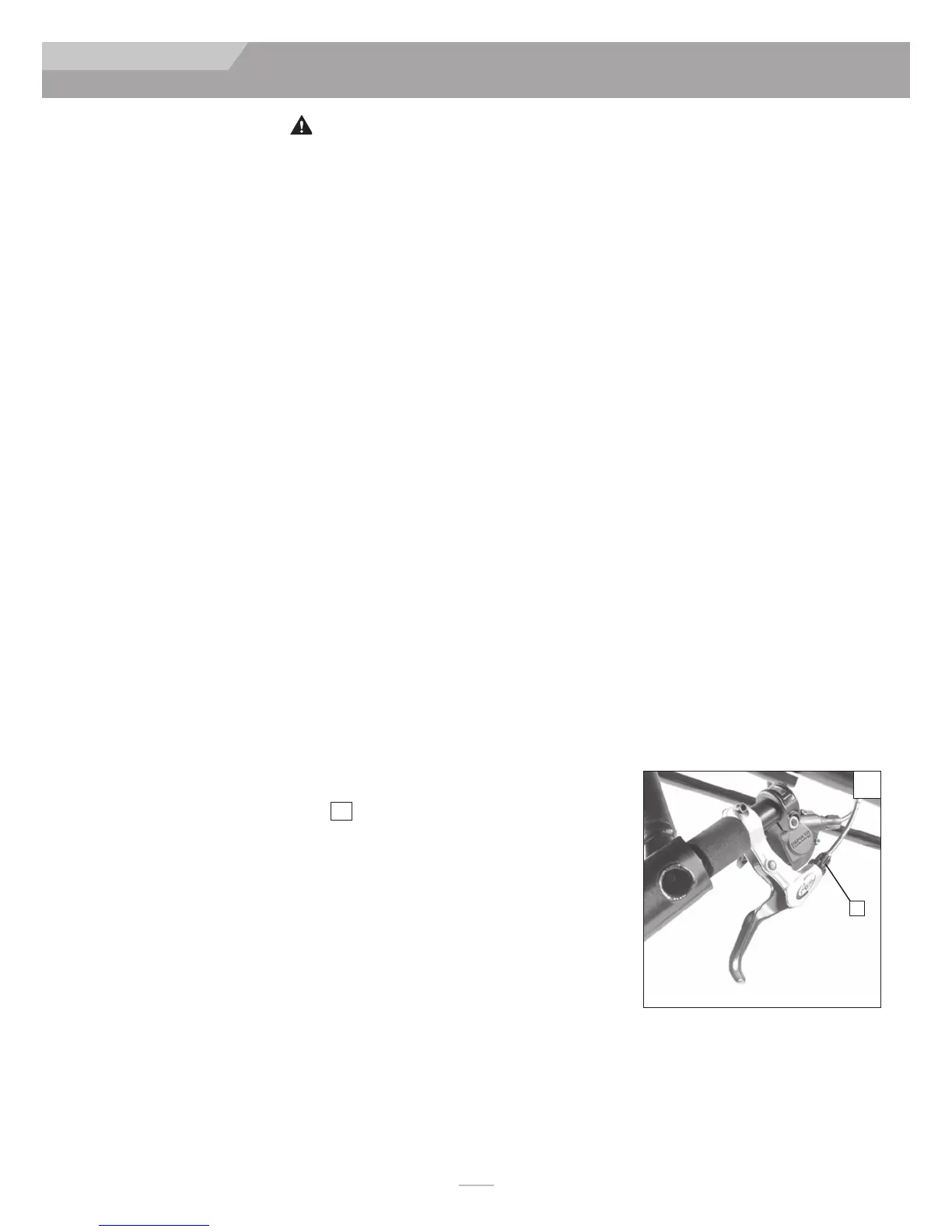 After each use the brake cables may stretch, causing the braking action to be limited. To tight-