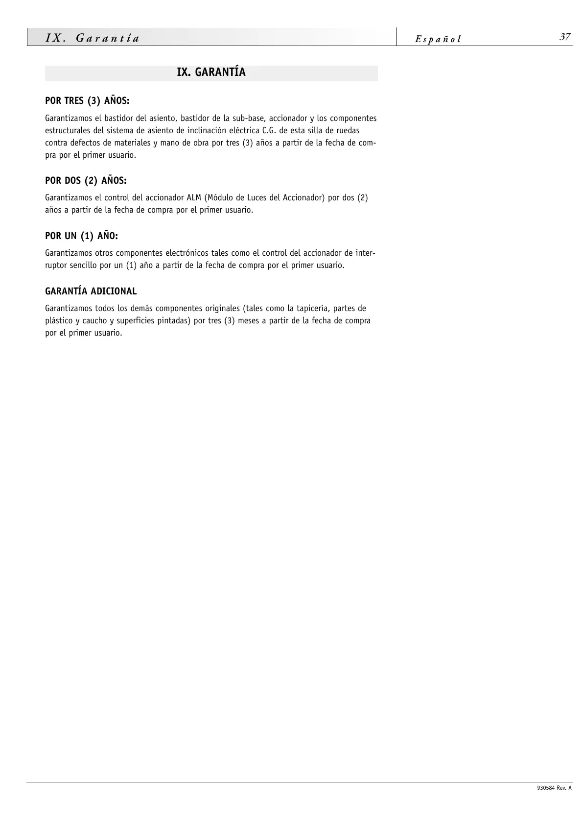 contra defectos de materiales y mano de obra por tres (3) años a partir de la fecha de com-