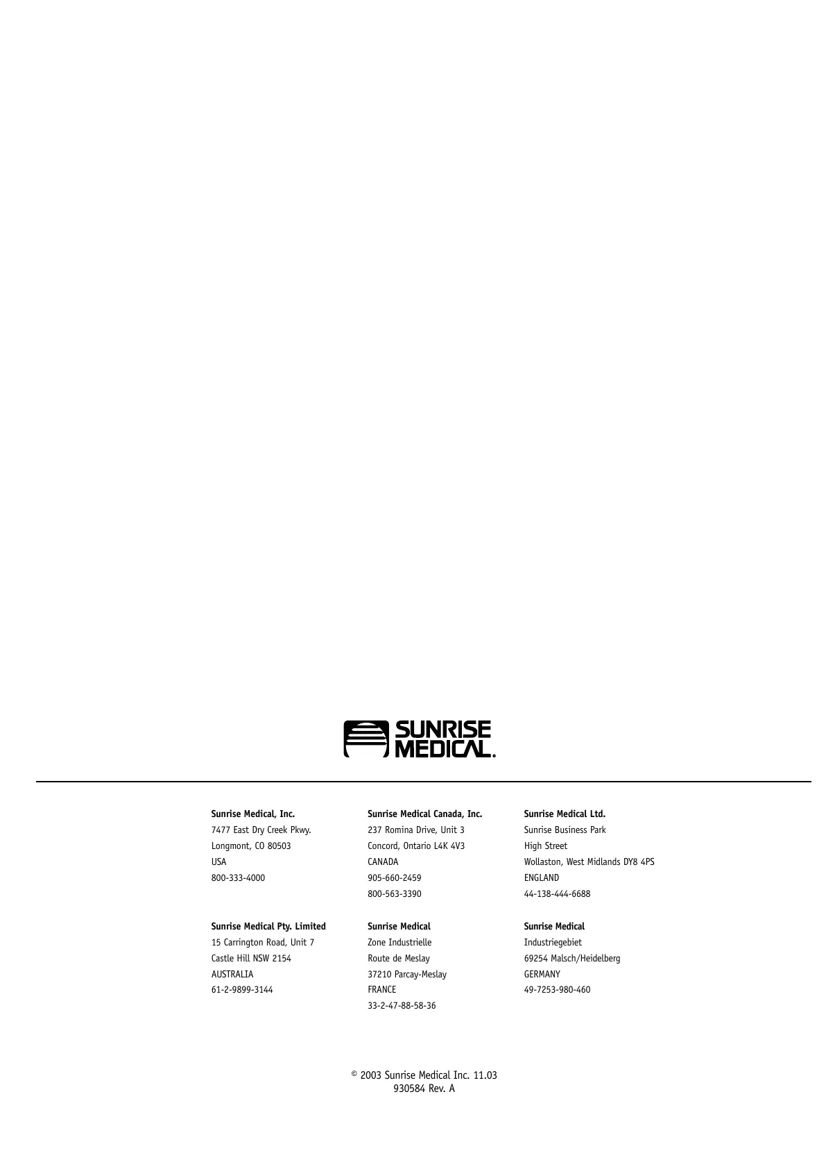 © 2003 Sunrise Medical Inc. 11.03