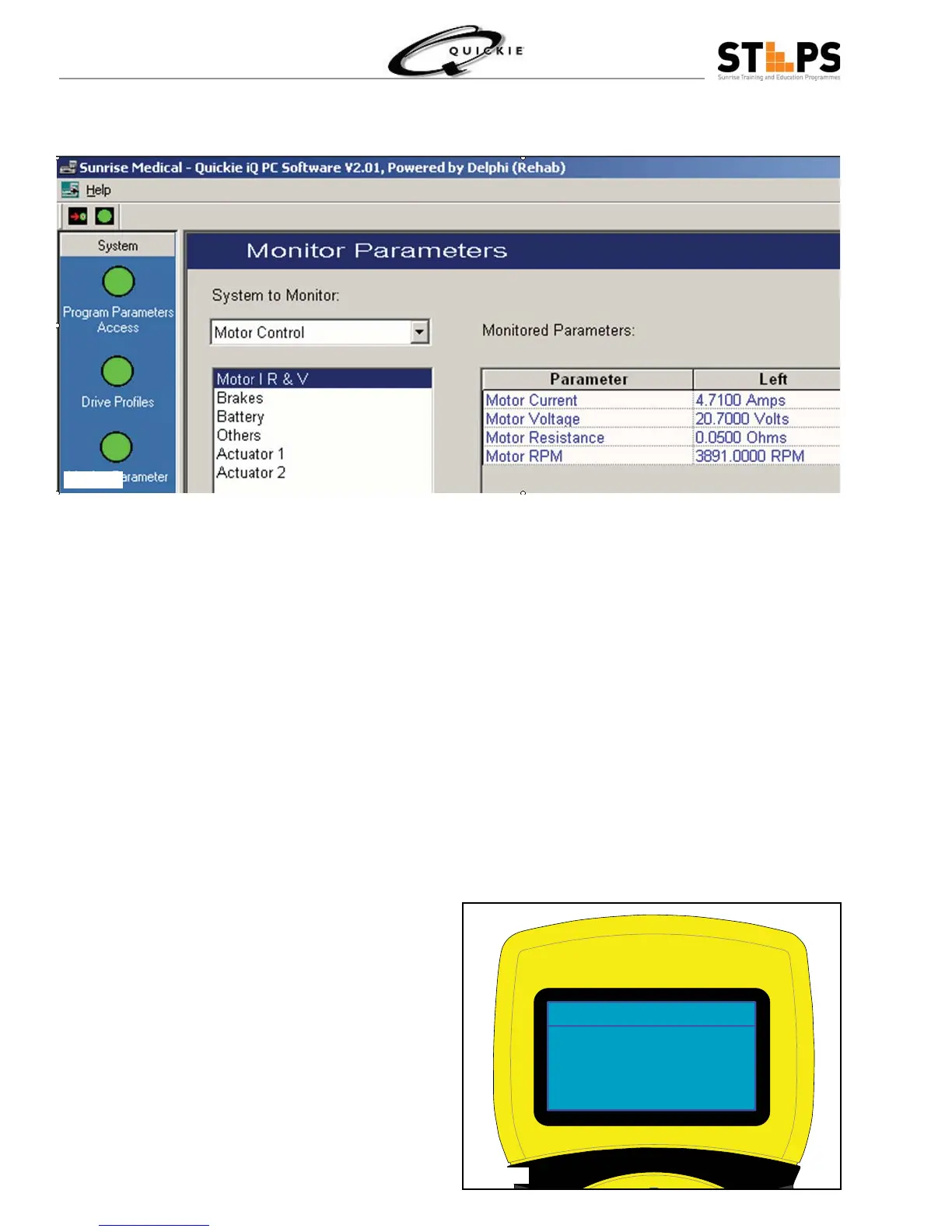 If using the Quickie iQ, select Monitor Parameter, followed by selecting Motor Controller, then Motor I R and 6.