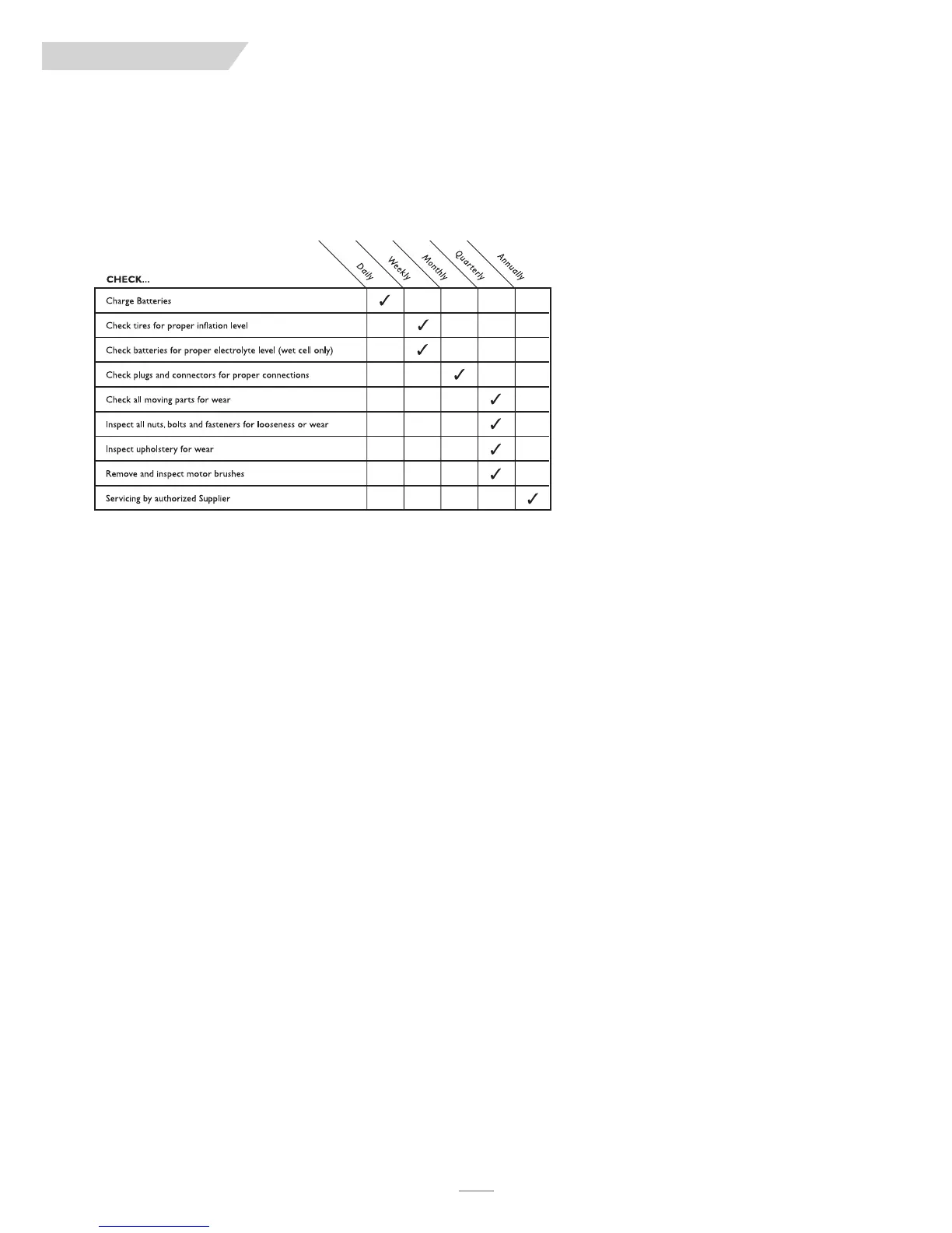 ou should check the items on this chart at the indicated intervals. If any of the items are
