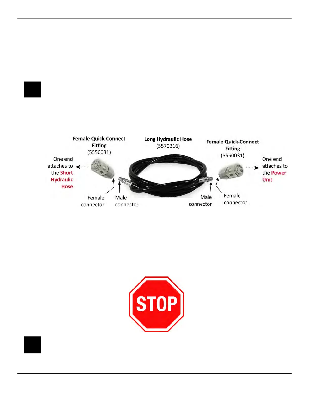 The following graphic shows the connections to make to the Long Hydraulic Hoses.