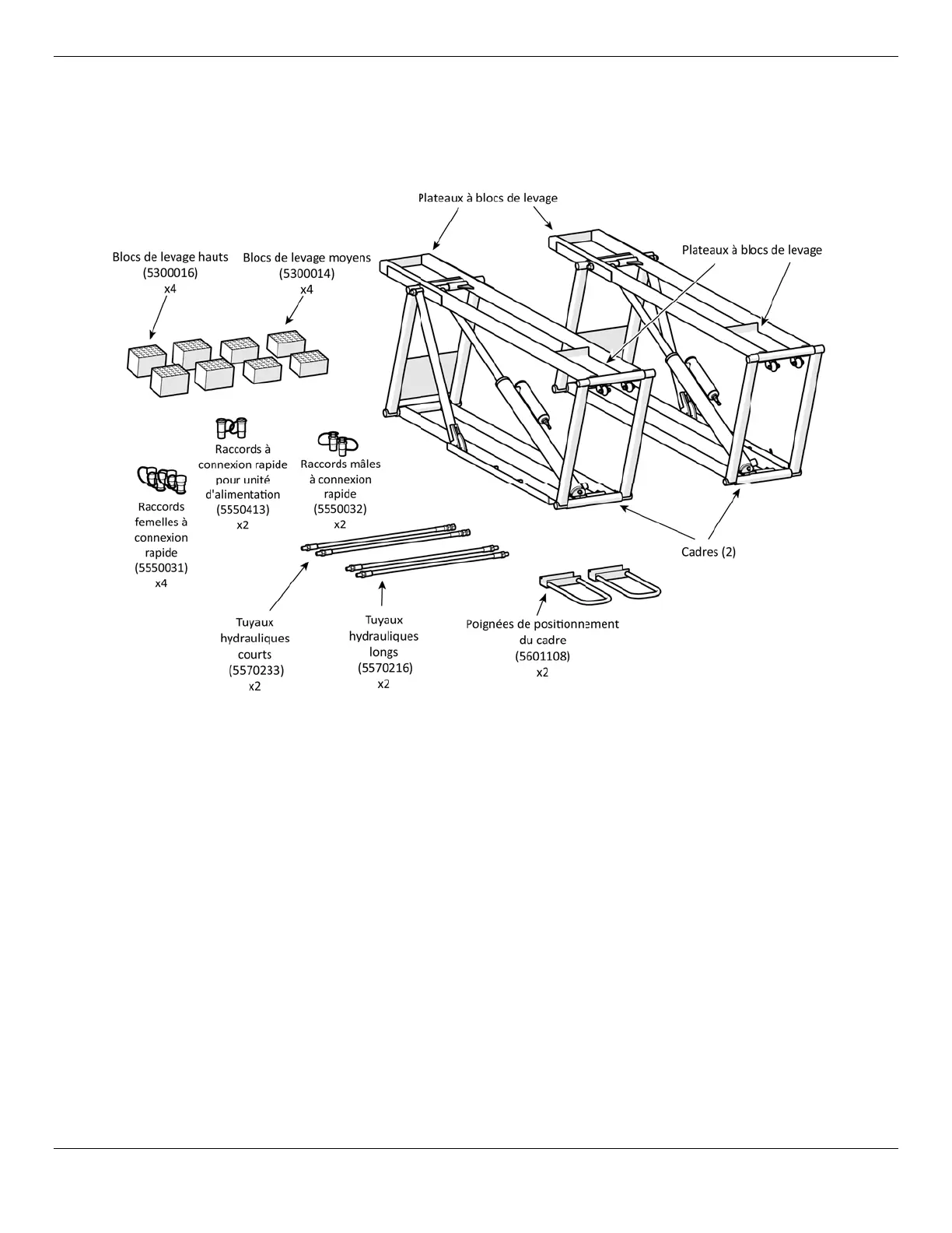 grands (3 pouces de haut). Les blocs de levage peuvent être placés à différents endroits dans les plateaux