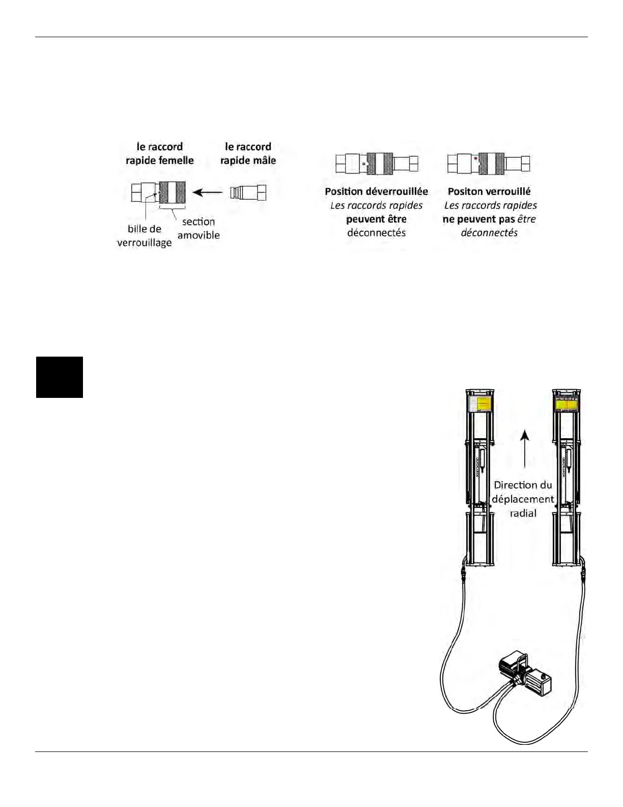 sur le tuyau hydraulique court sortant de l'un des cadres. L'autre extrémité