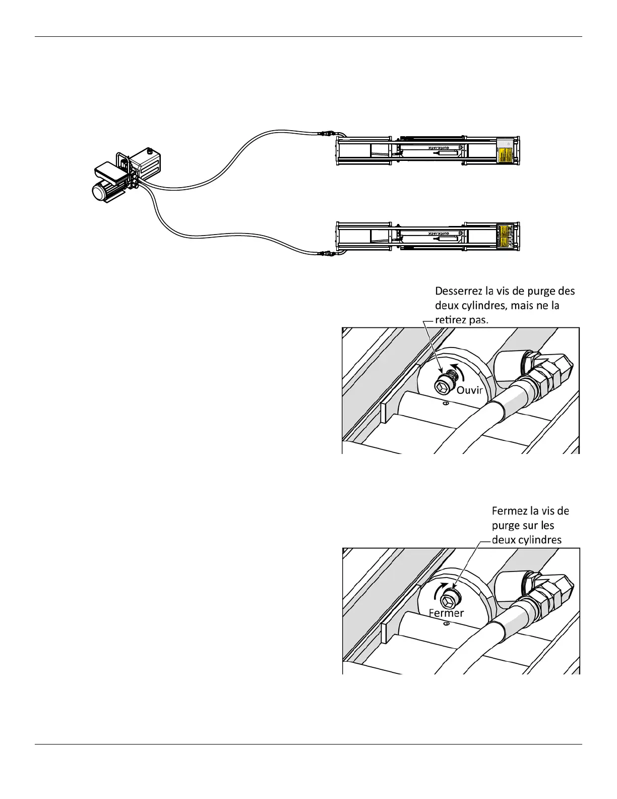 mélange d'air et de liquide hydraulique sortiront autour des vis de purge. Continuez à maintenir le bouton